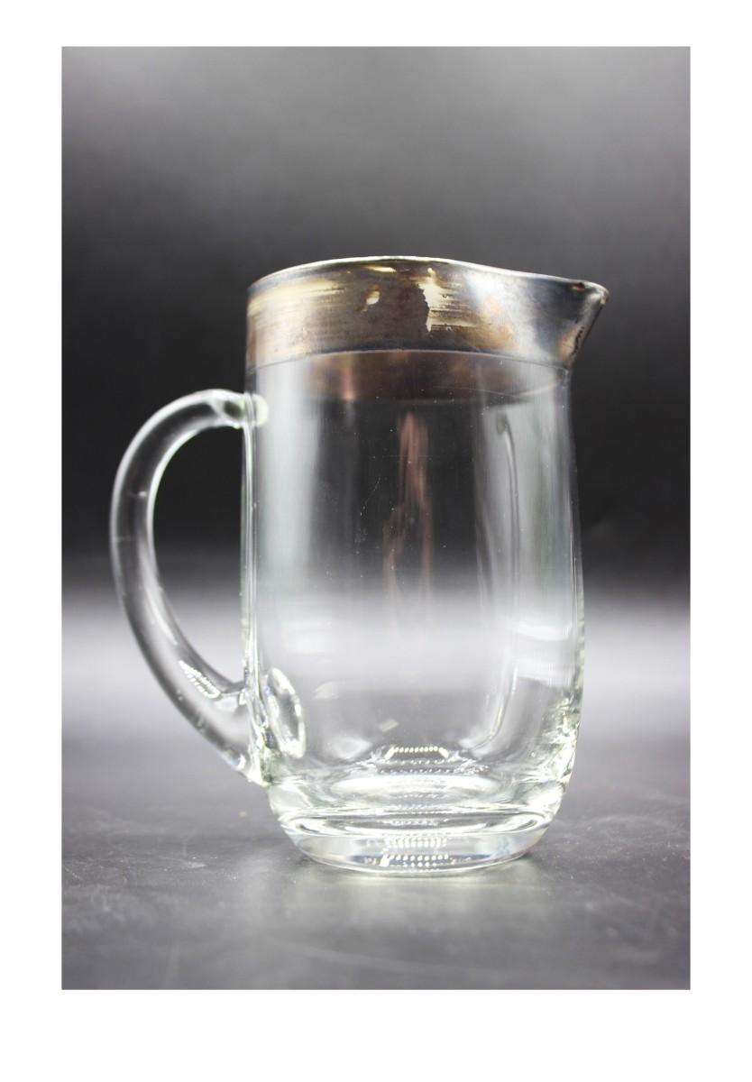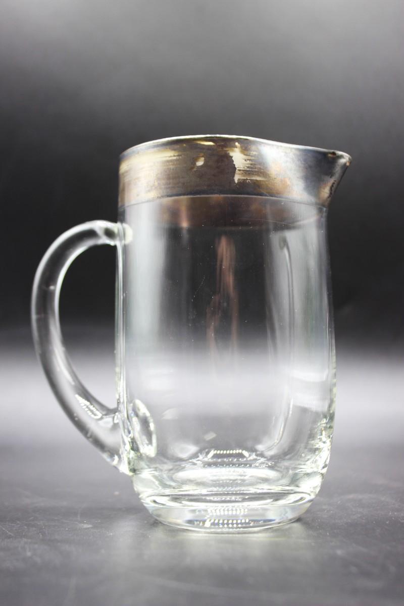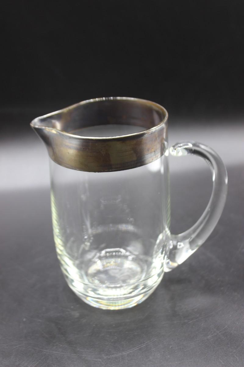 Vintage Dorothy Thorpe Glass Silver Band Pitcher