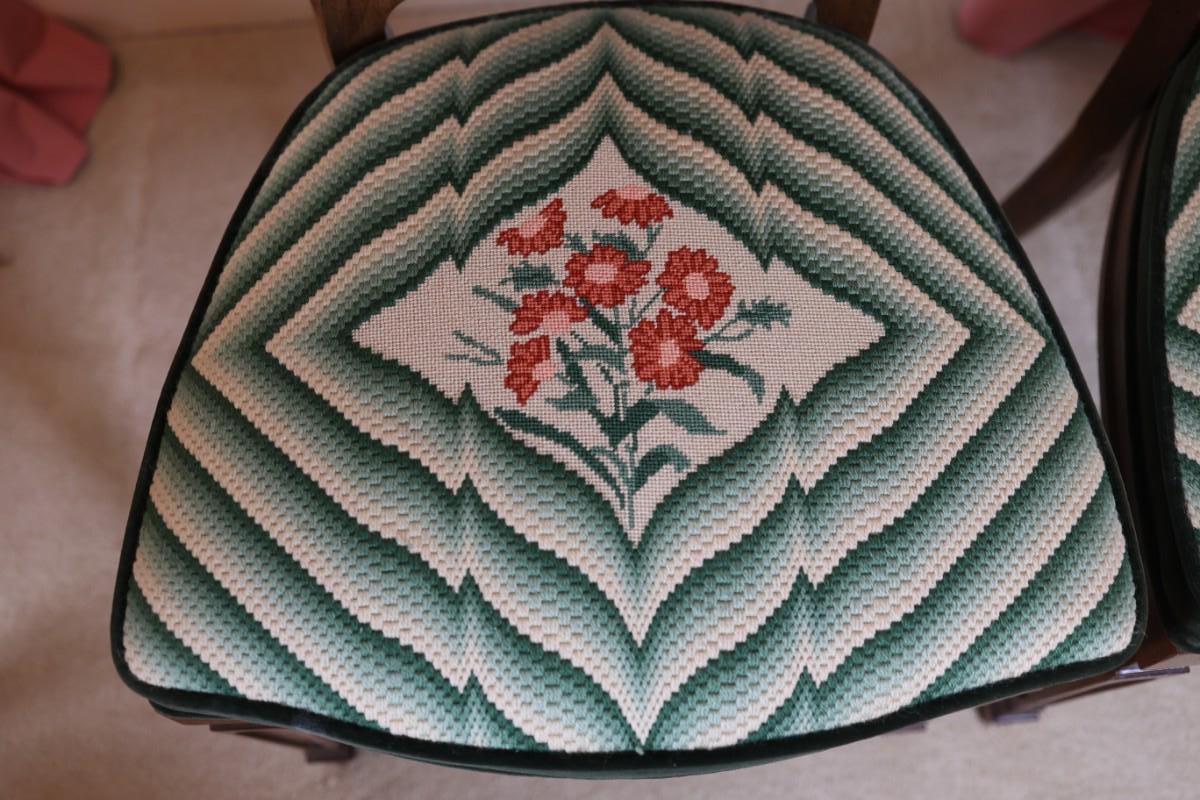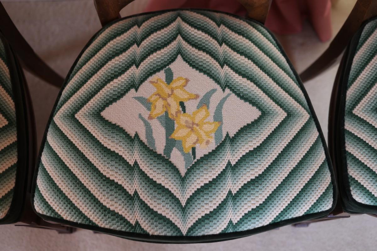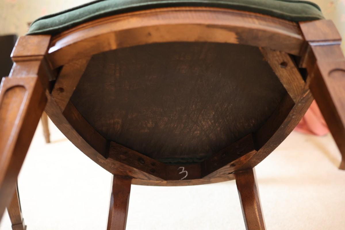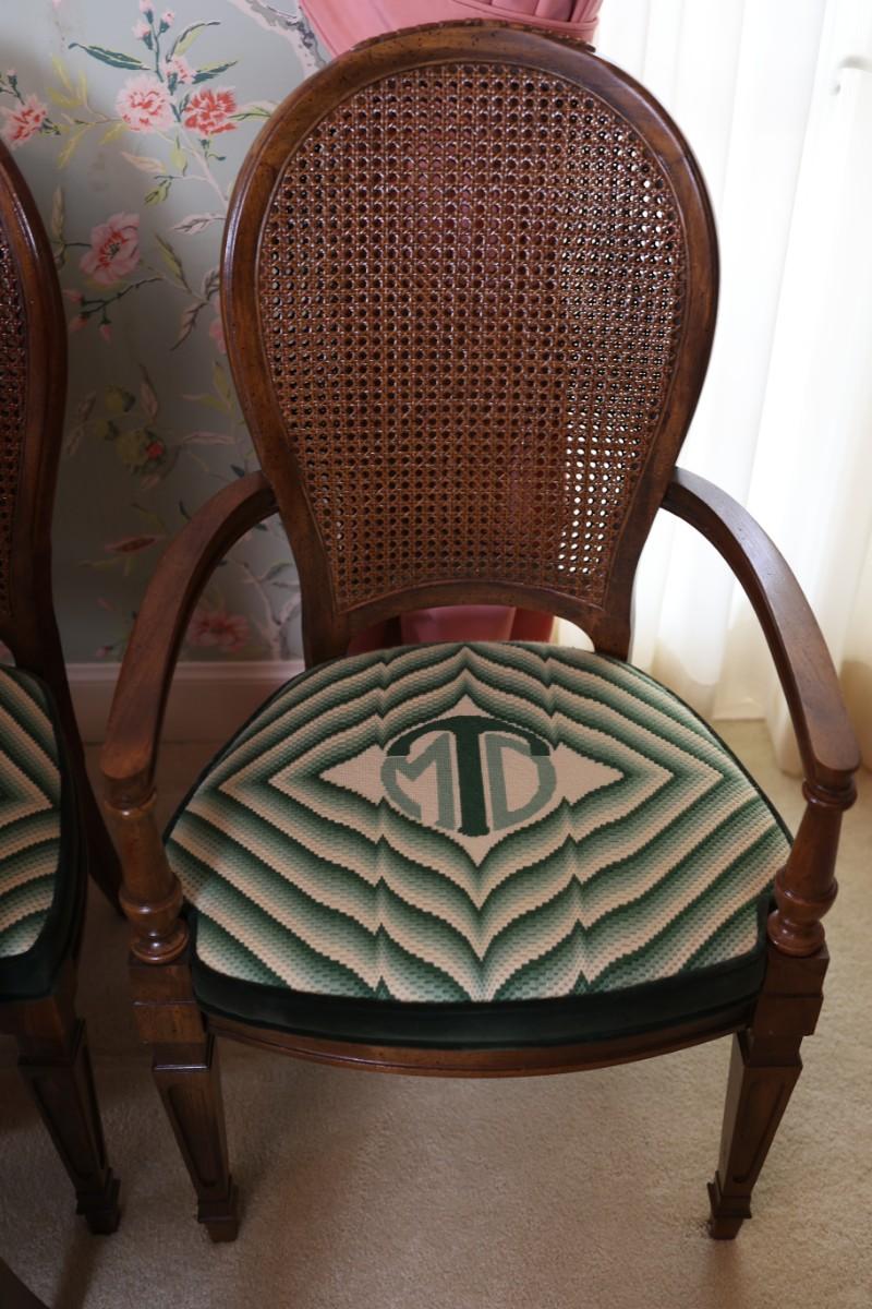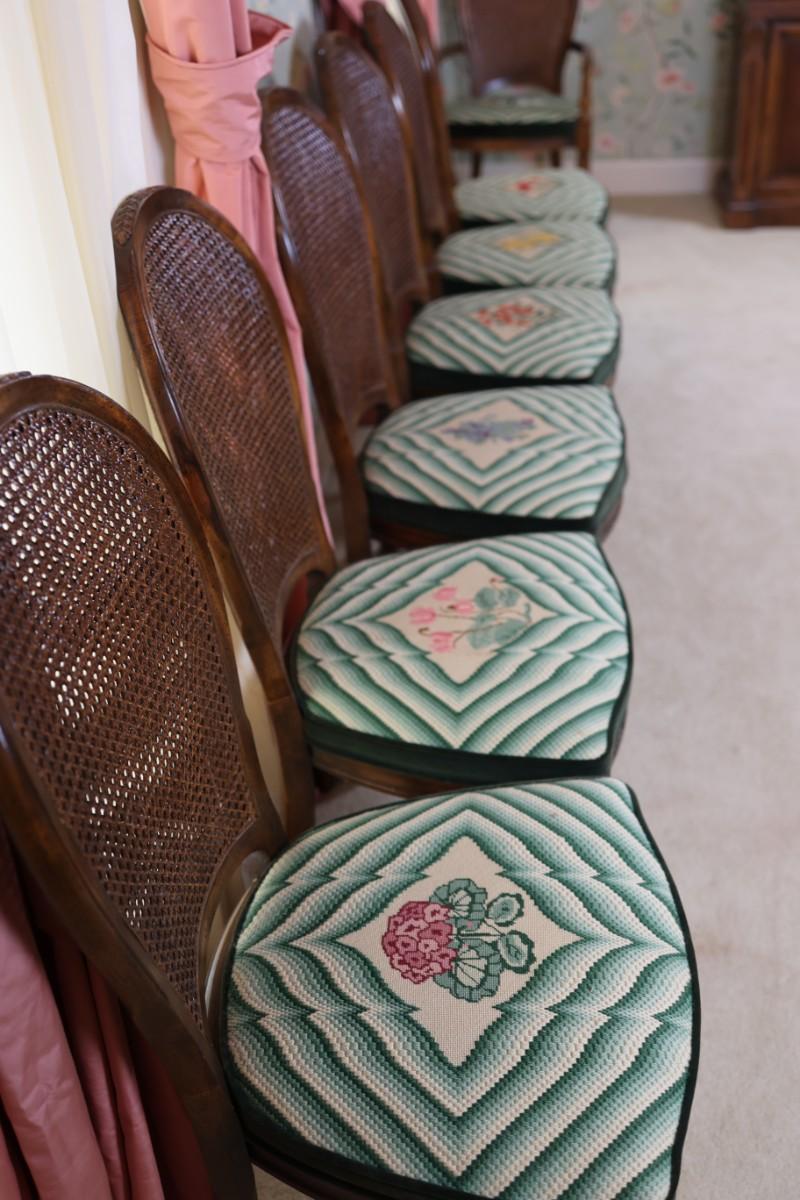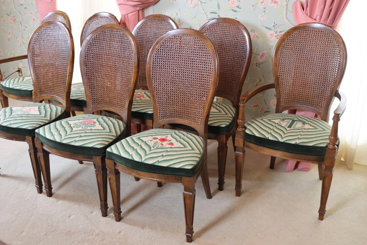 Excellent condition. Two armchairs and six side chairs.