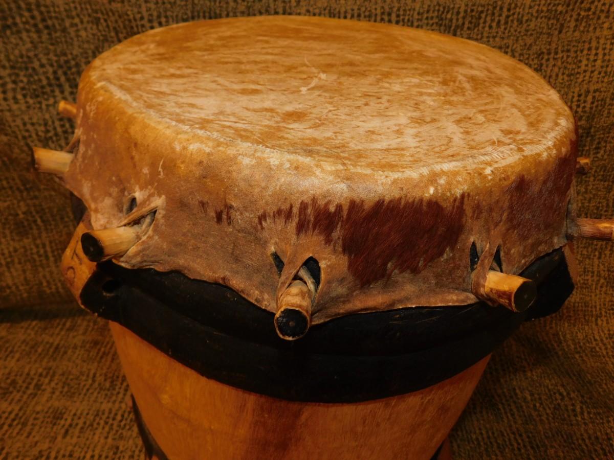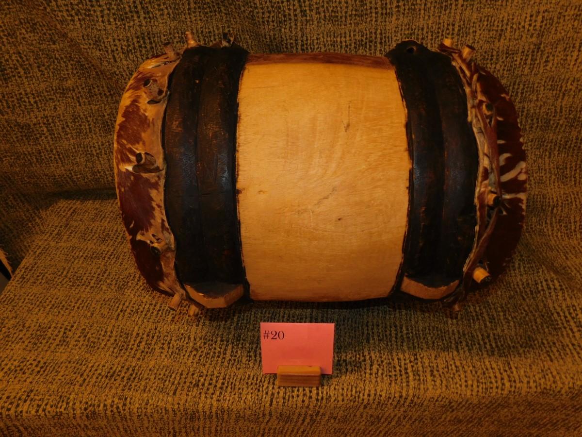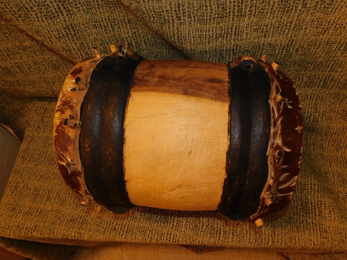 Vintage Double Headed African Dunun Drum 15.5”x13”x13”