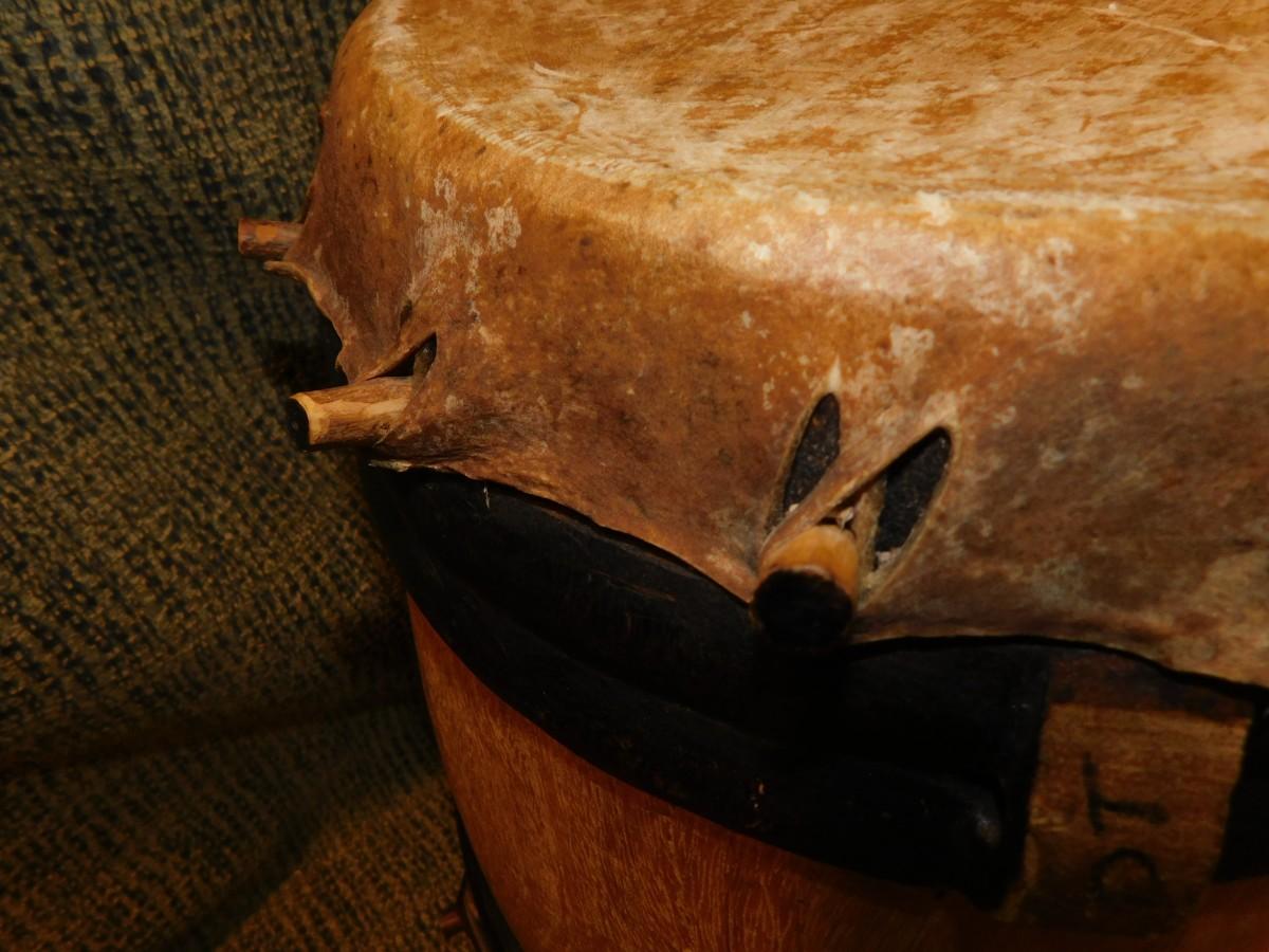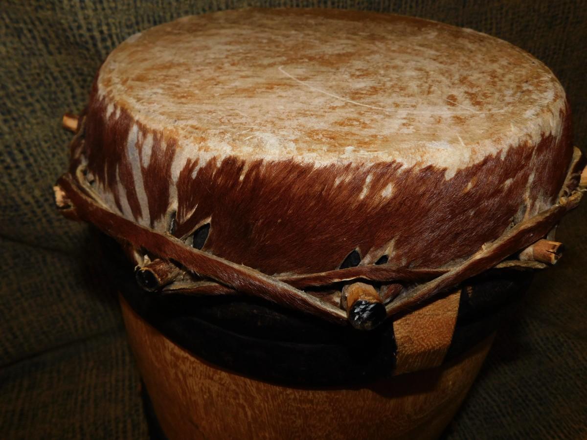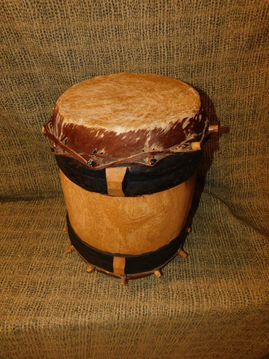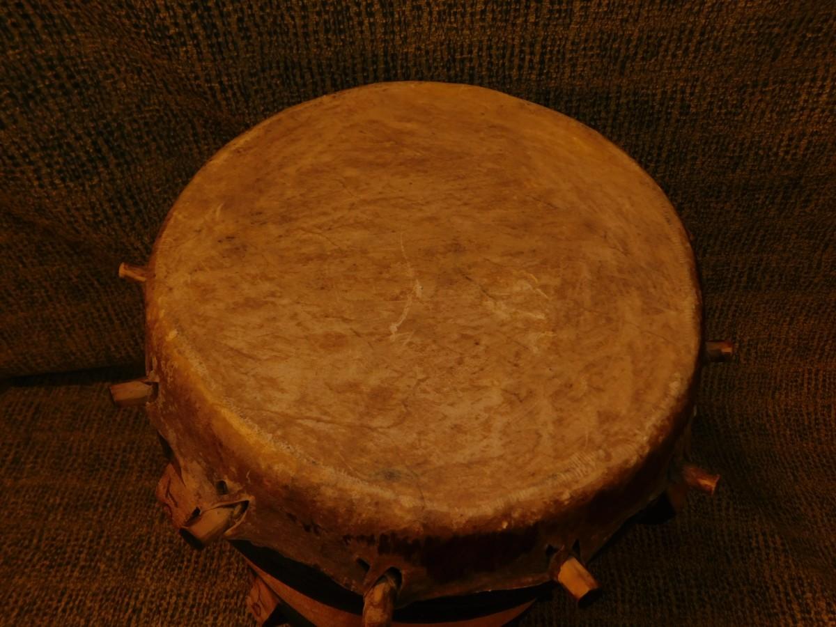 Vintage Double Headed African Dunun Drum 15.5”x13”x13”