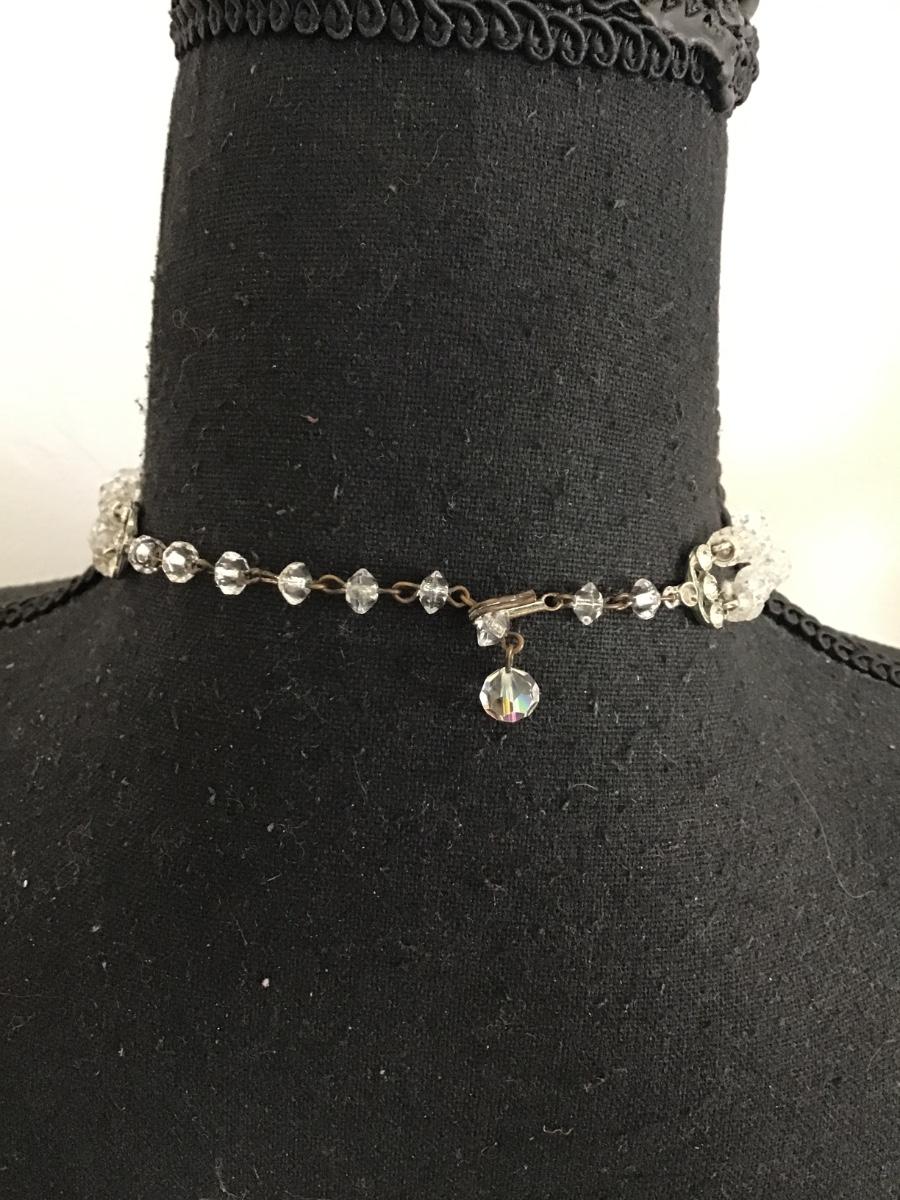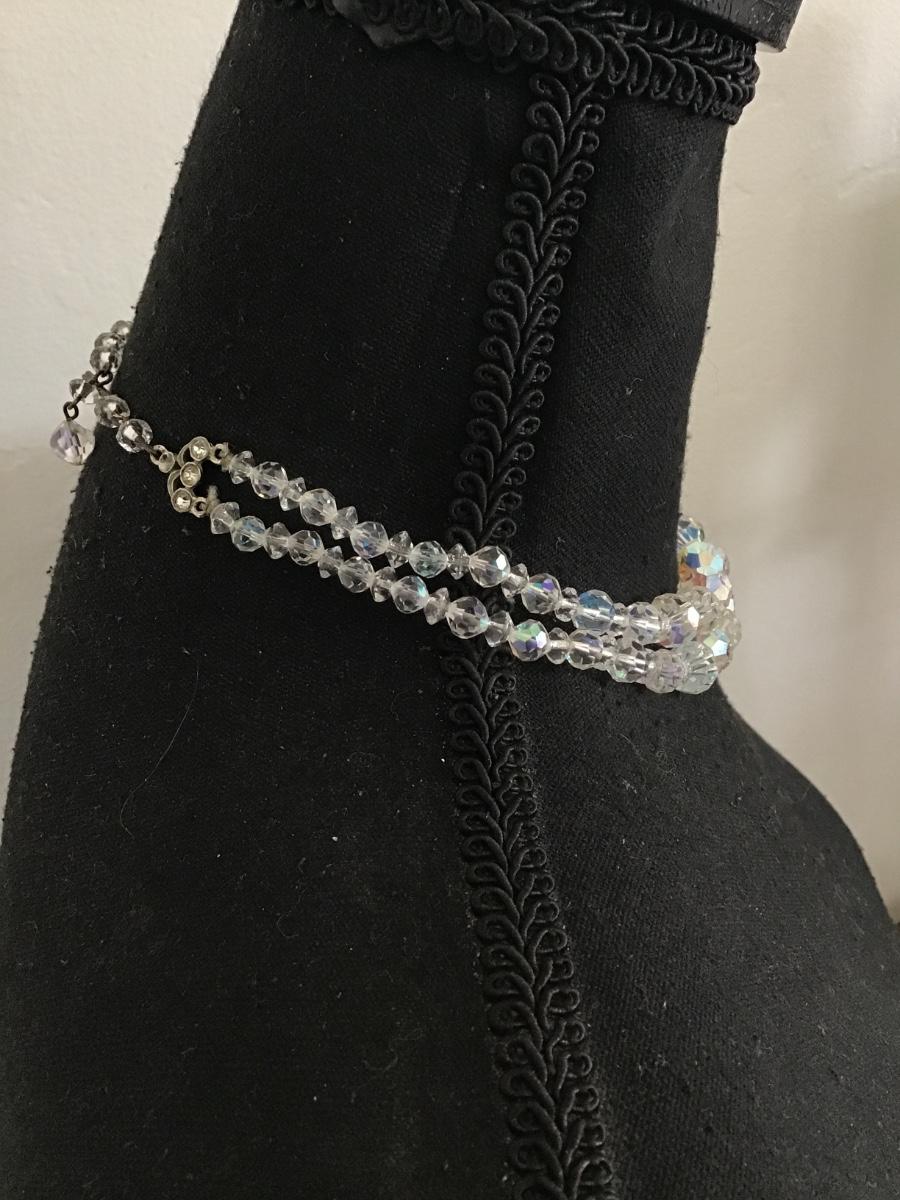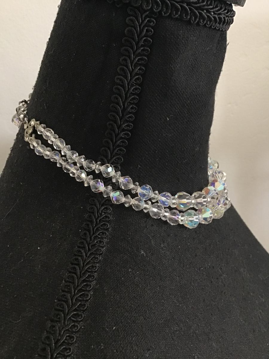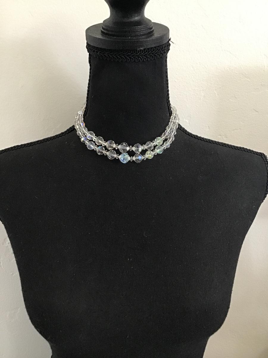 Vintage double strand, aurora, borealis, crystal bead, choker, necklace, silver toned