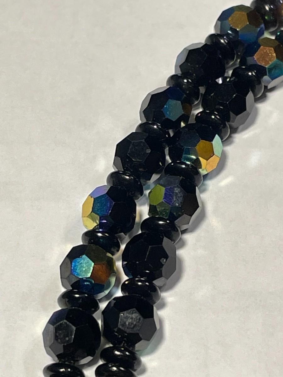 Vintage Double Strand Black Crystal Bead Necklace 24" Long w/Cameo Clasp in VG Preowned Condition as Pic'd. $5 DOMESTIC SHIPPING.