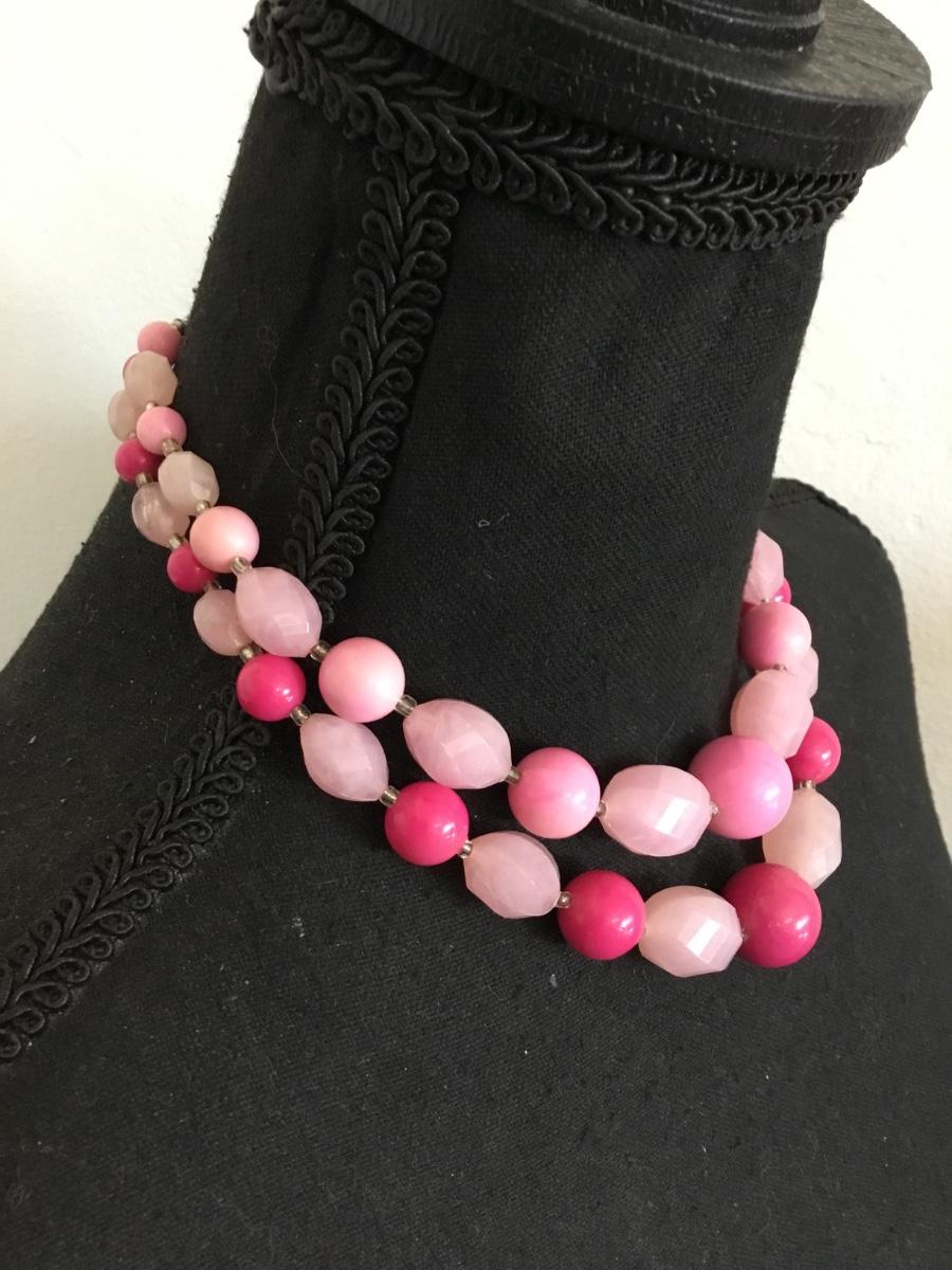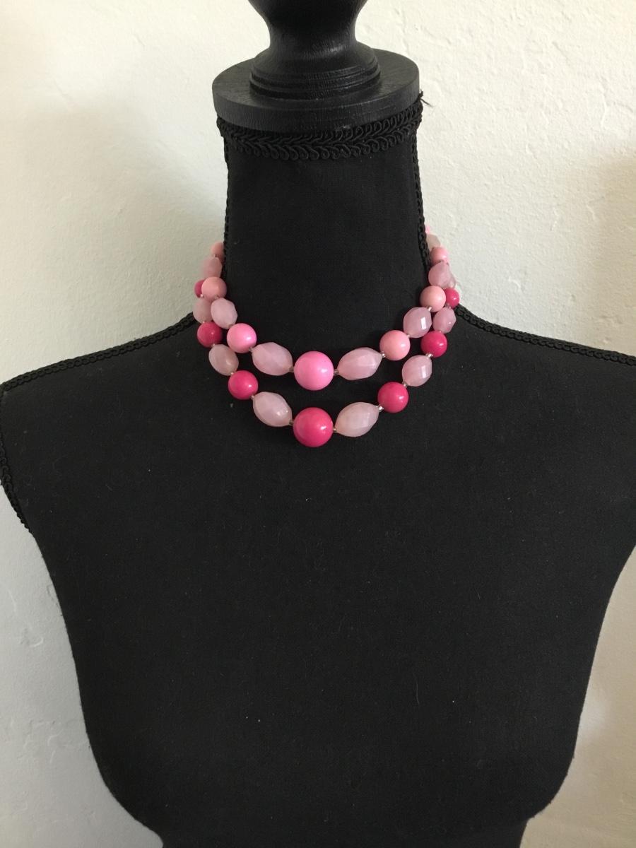 Vintage double strand, chunky light and dark pink bubblegum necklace