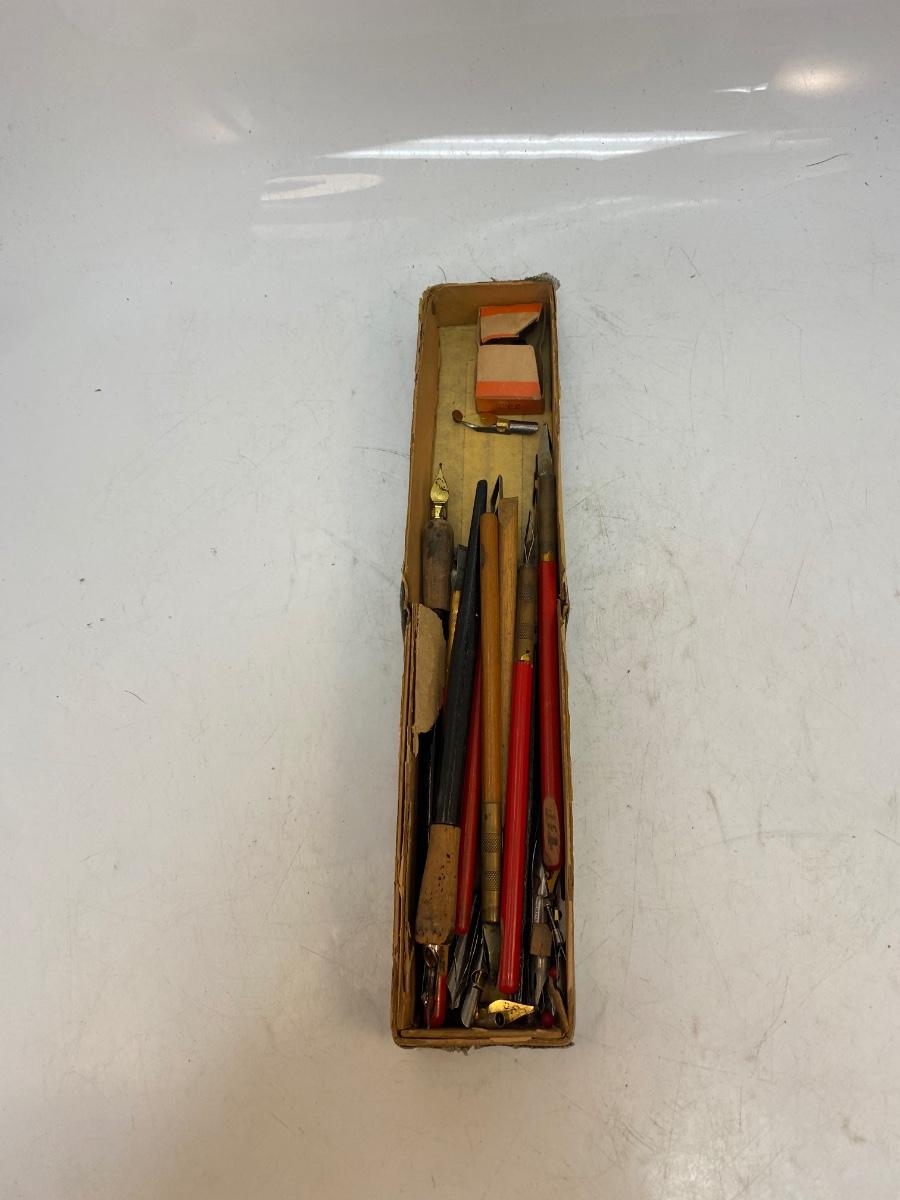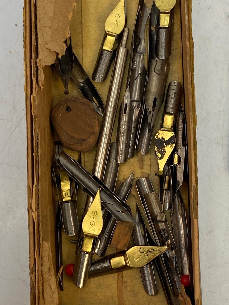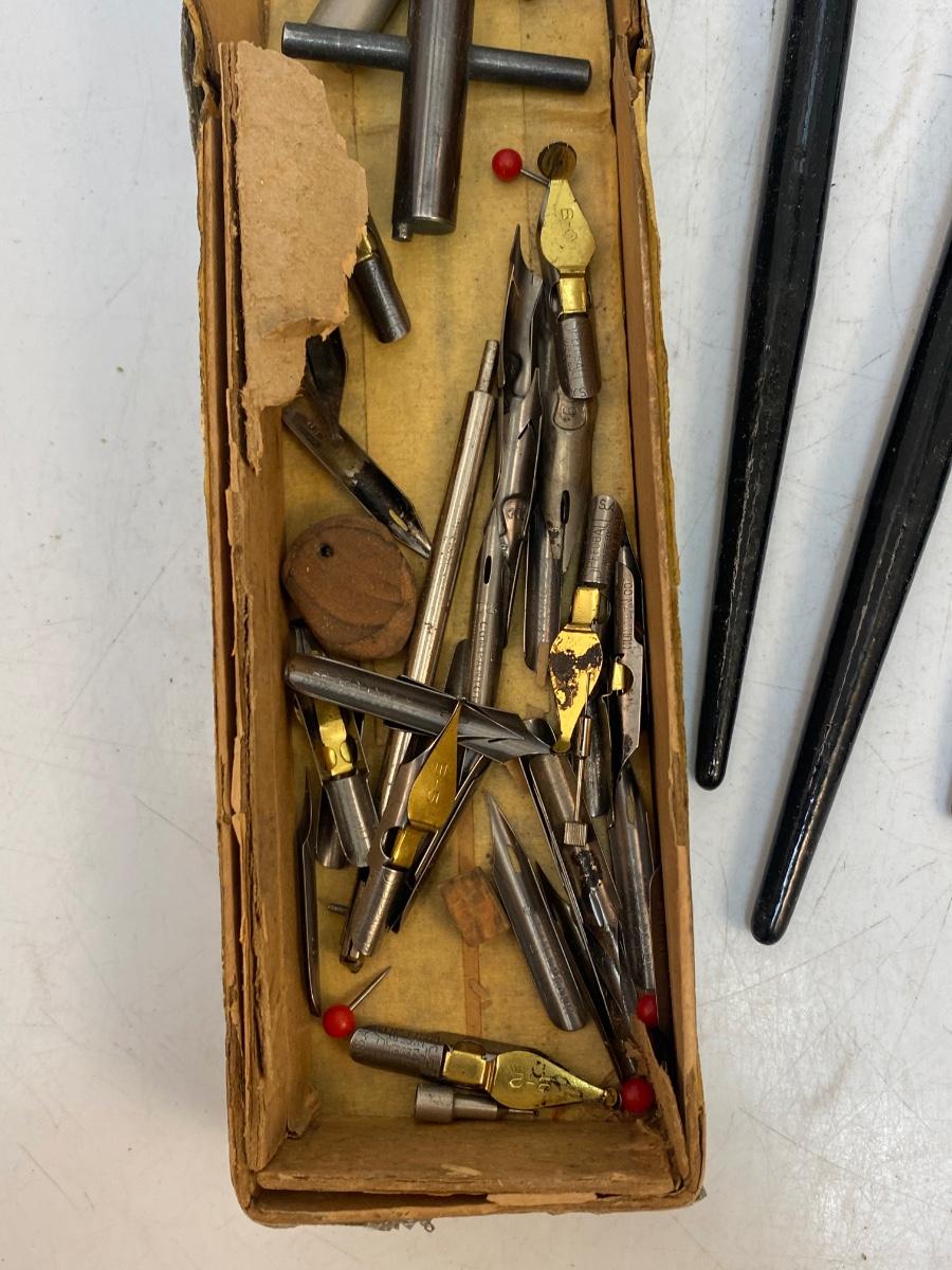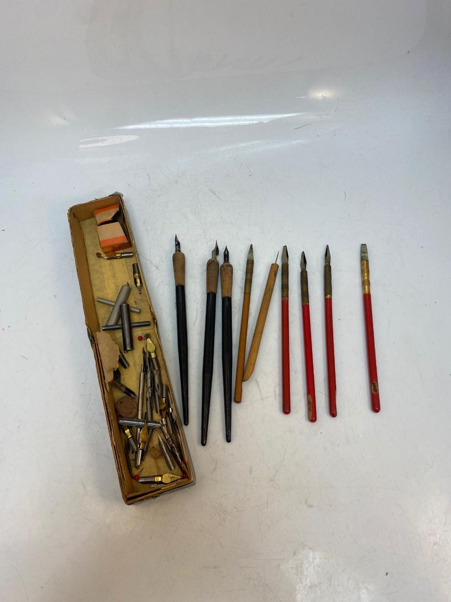 Vintage Drafting Drawing Inkwell Quill Tip Pens Nibs Newton Stoakes Reliance. Mixed lot of pens and nibs. In good used vintage condition.