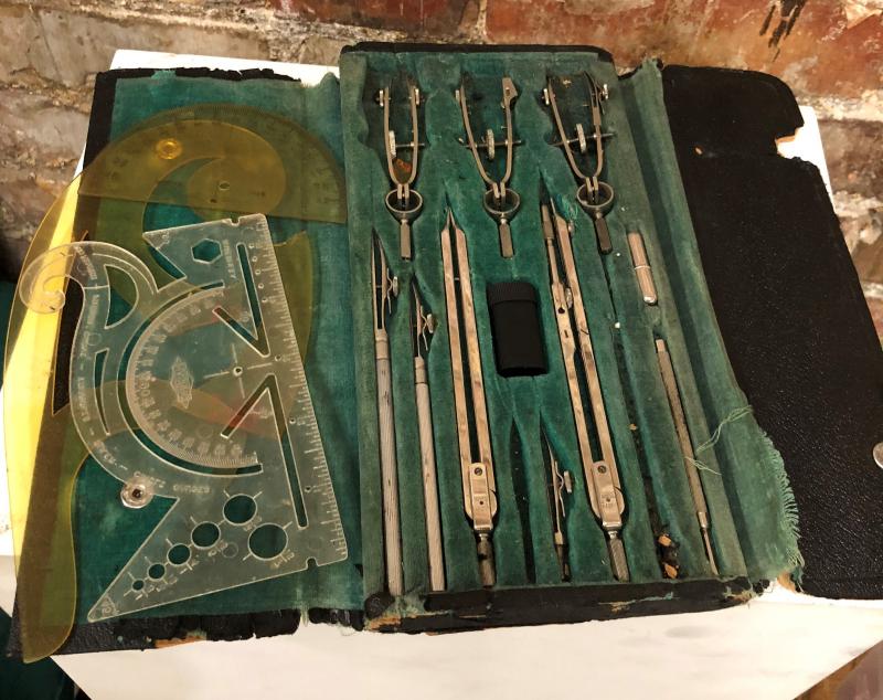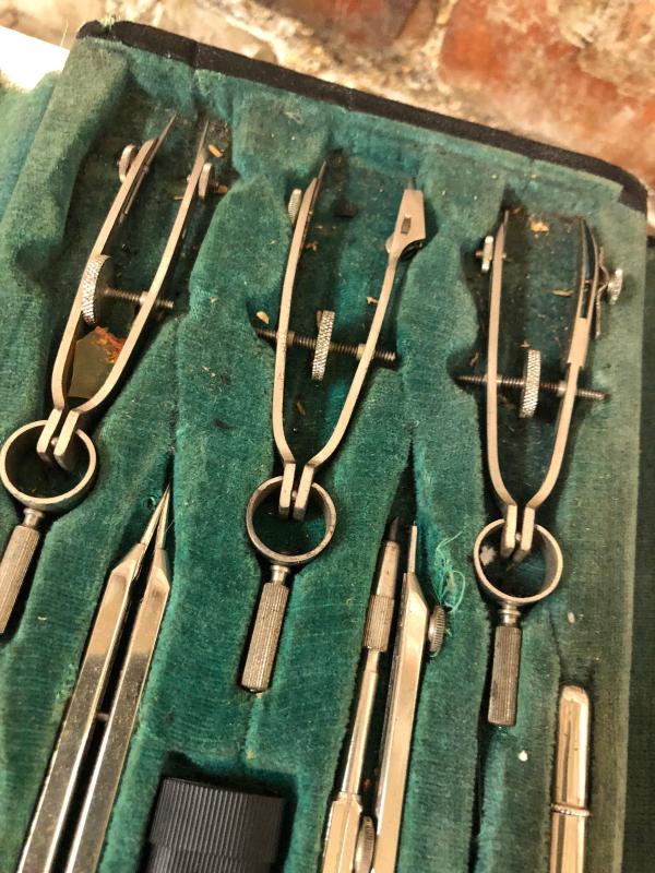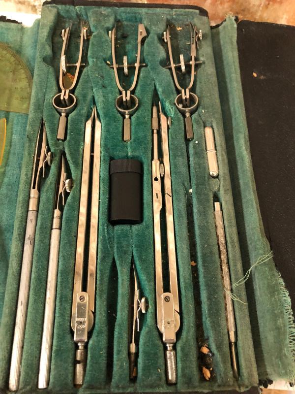 As shown in original case here is a vintage precision Drafting Set including plastic rulers...