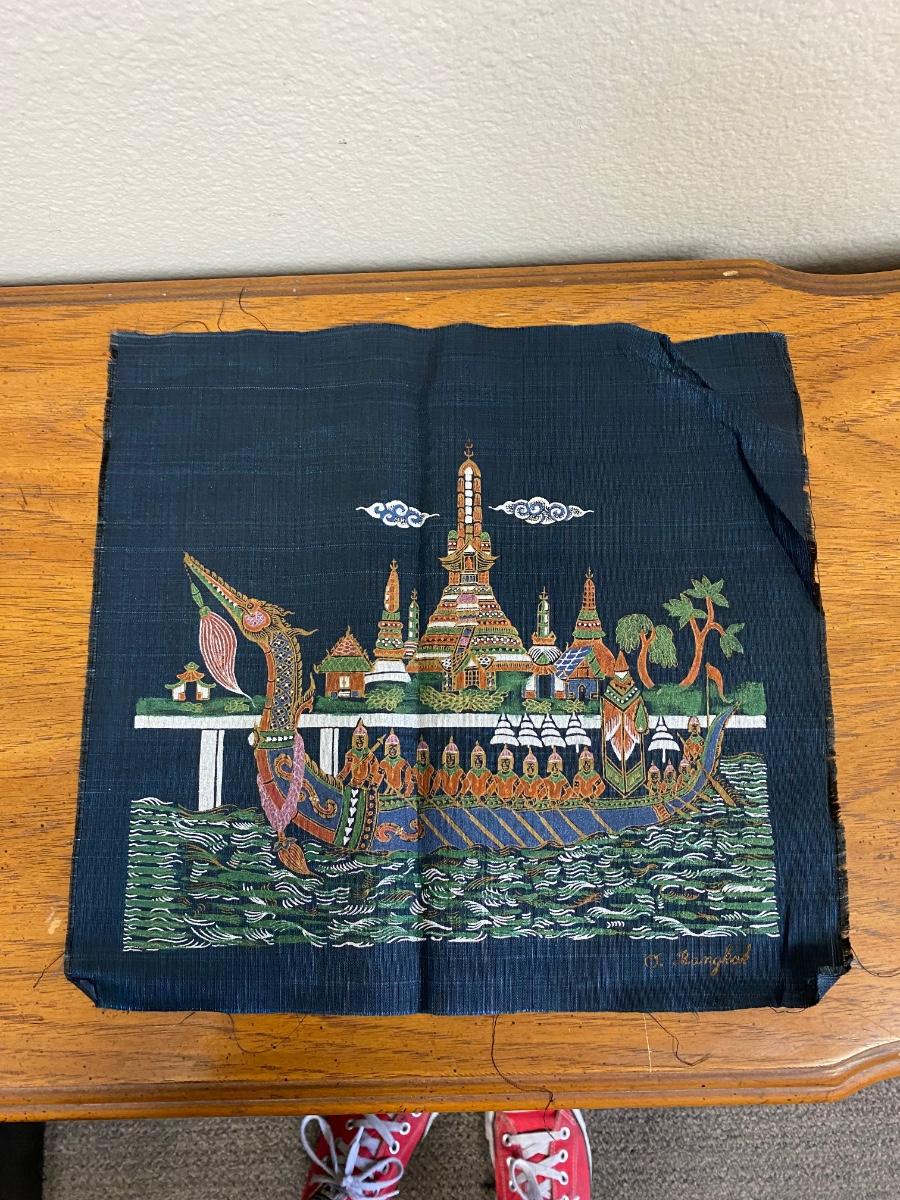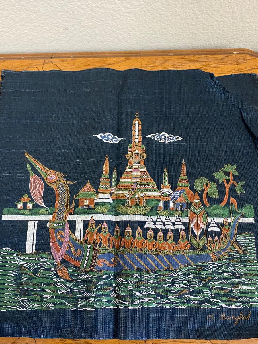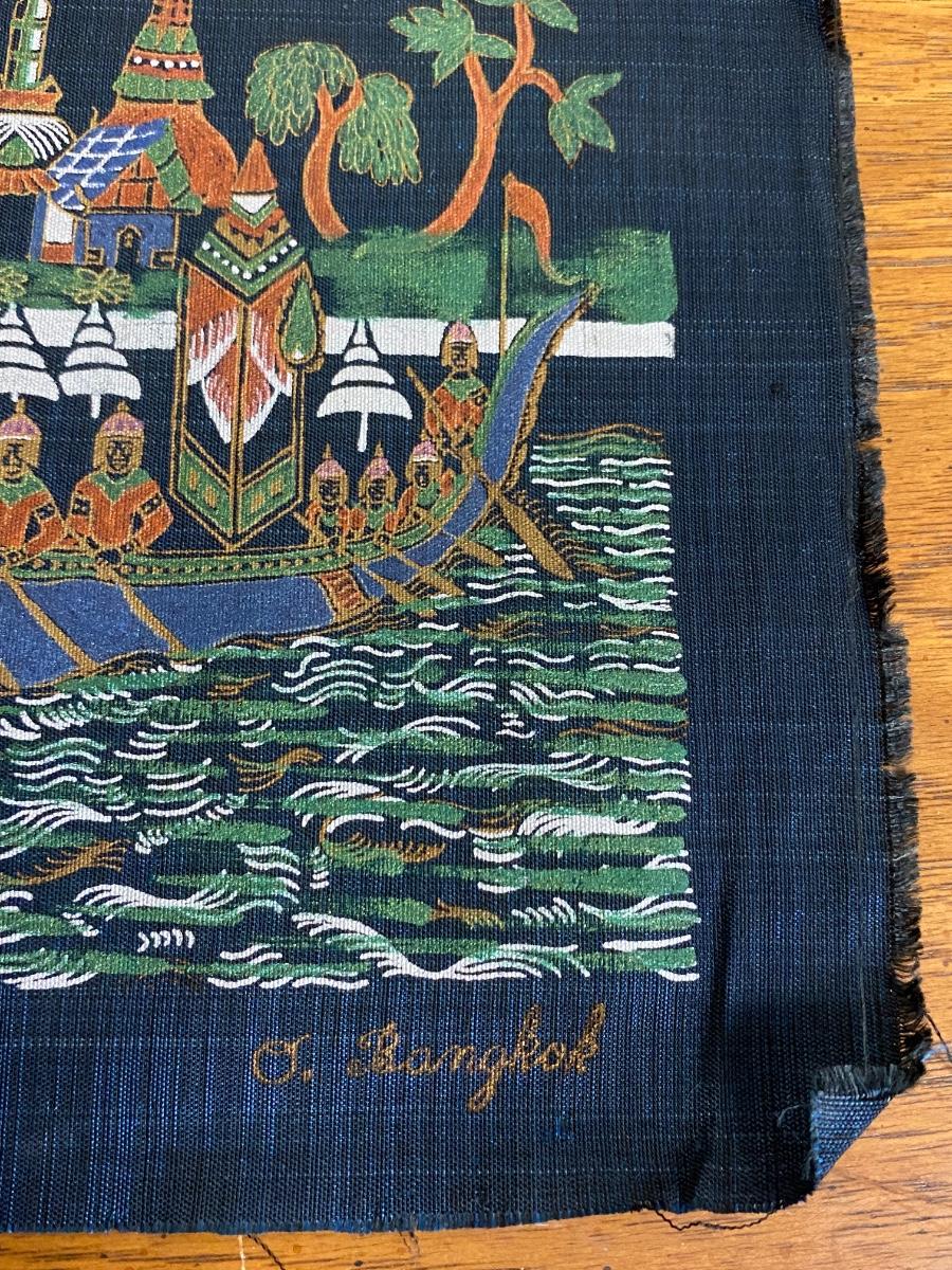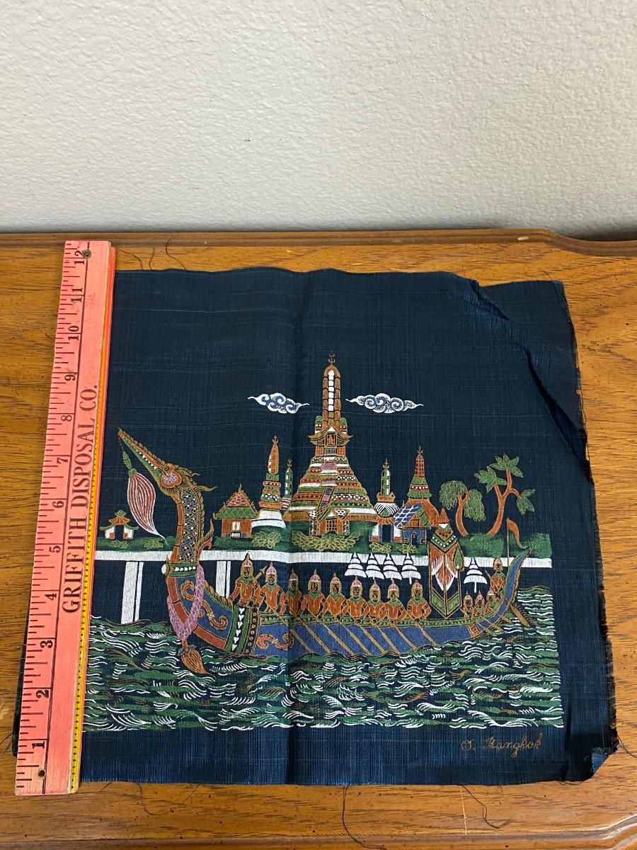 Vintage Dragon Boat Painted Scenery Bangkok Thailand Souvenir. In good condition, great for framing. Under 12" square.