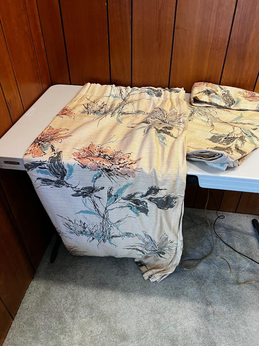 Used Vallance and 2 drapes. About 50" Long X 80" Wide. Awesome Thrifting Material for the new found seamstress.