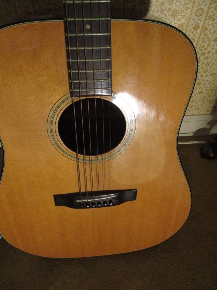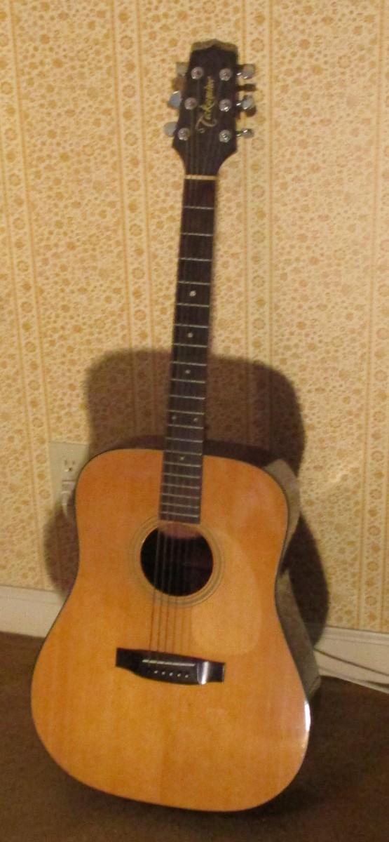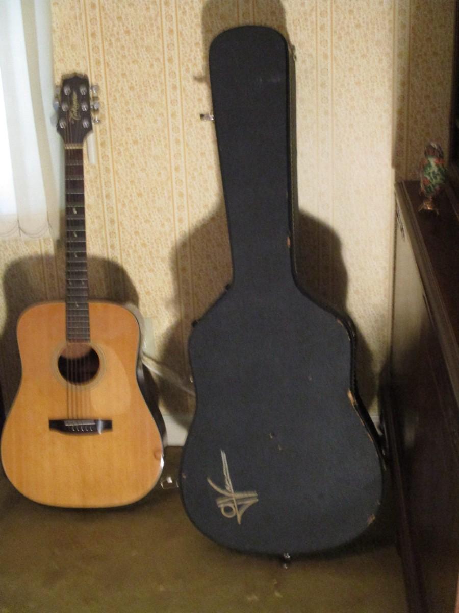 Vintage Takamine Acoustic Guitar Model F-340 with Hard Case pick guard is missing.