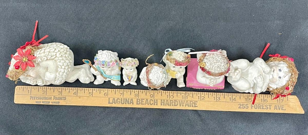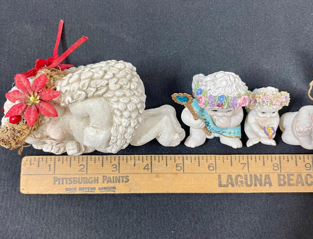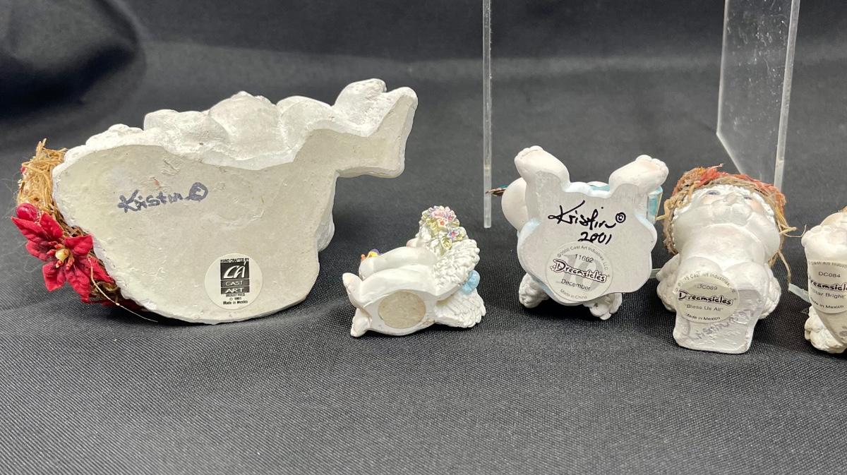 Dreamsicle Angel Figurine Lot 7 pieces - hand painted by Kristin with dried flower halo