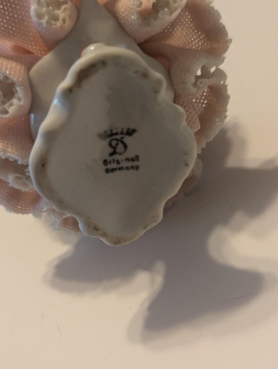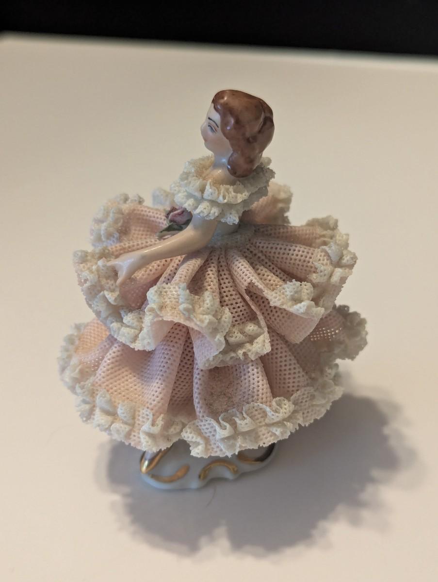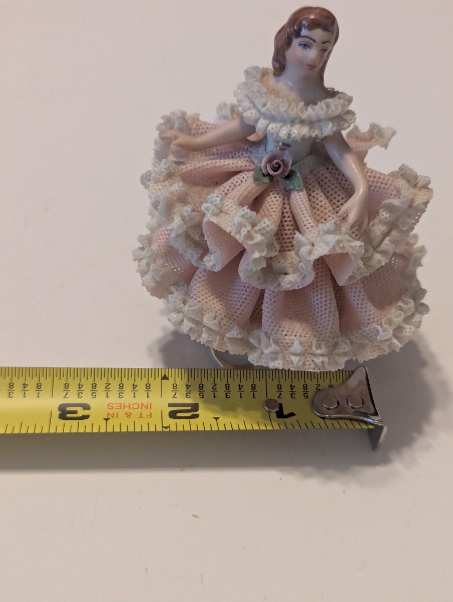 Vintage Dresden Germany Porcelain Mesh Lace Lady Figurine