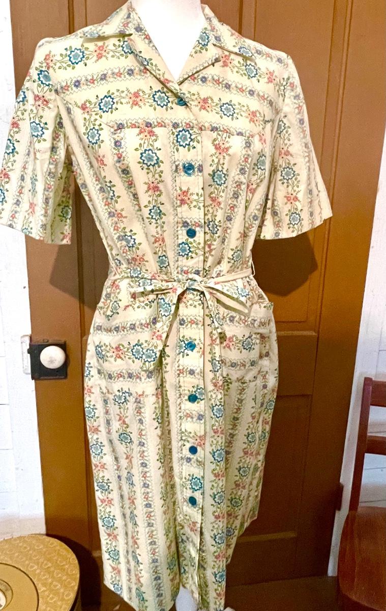 Cute floral dress with pockets and sash. Button up. Fun print!