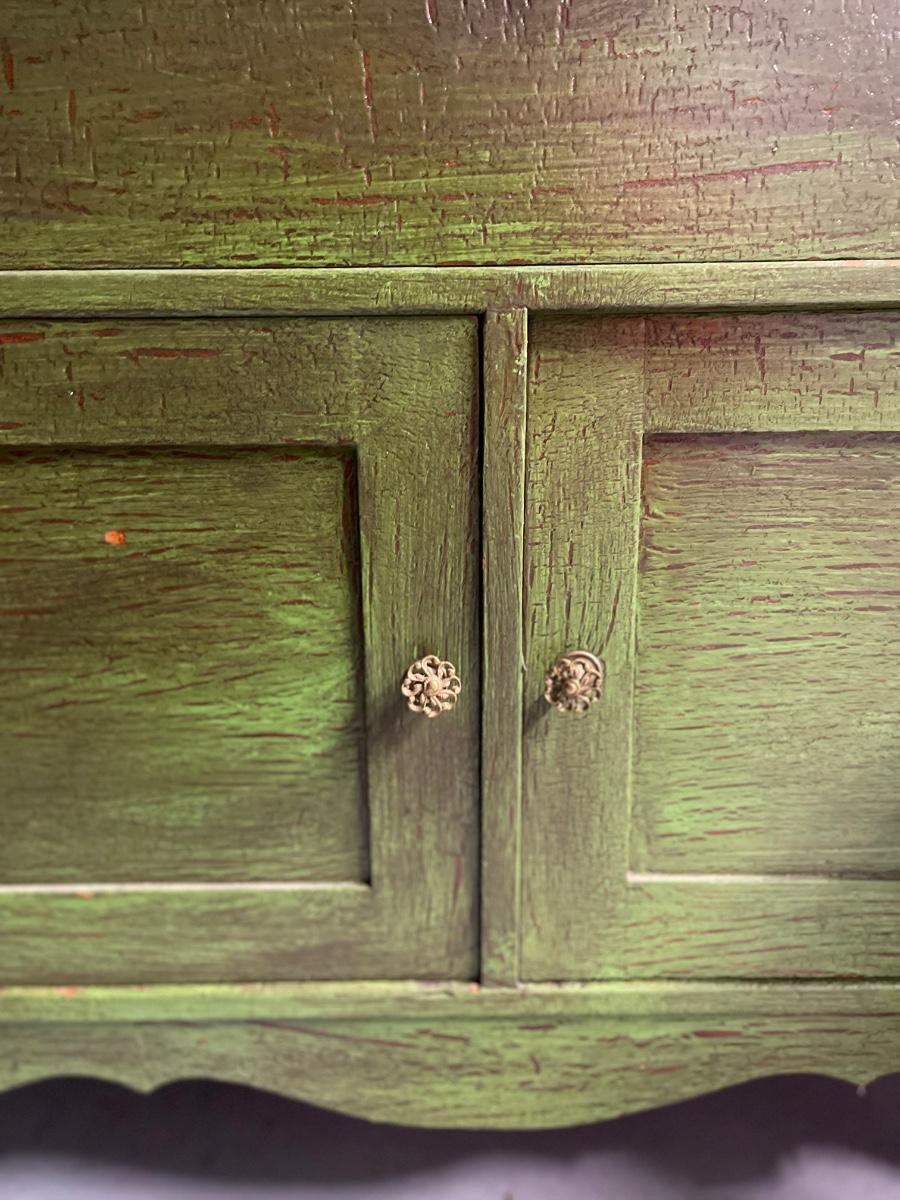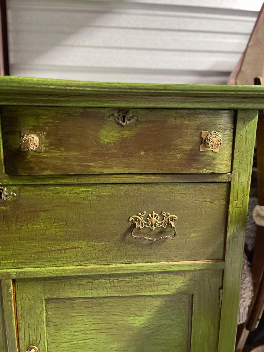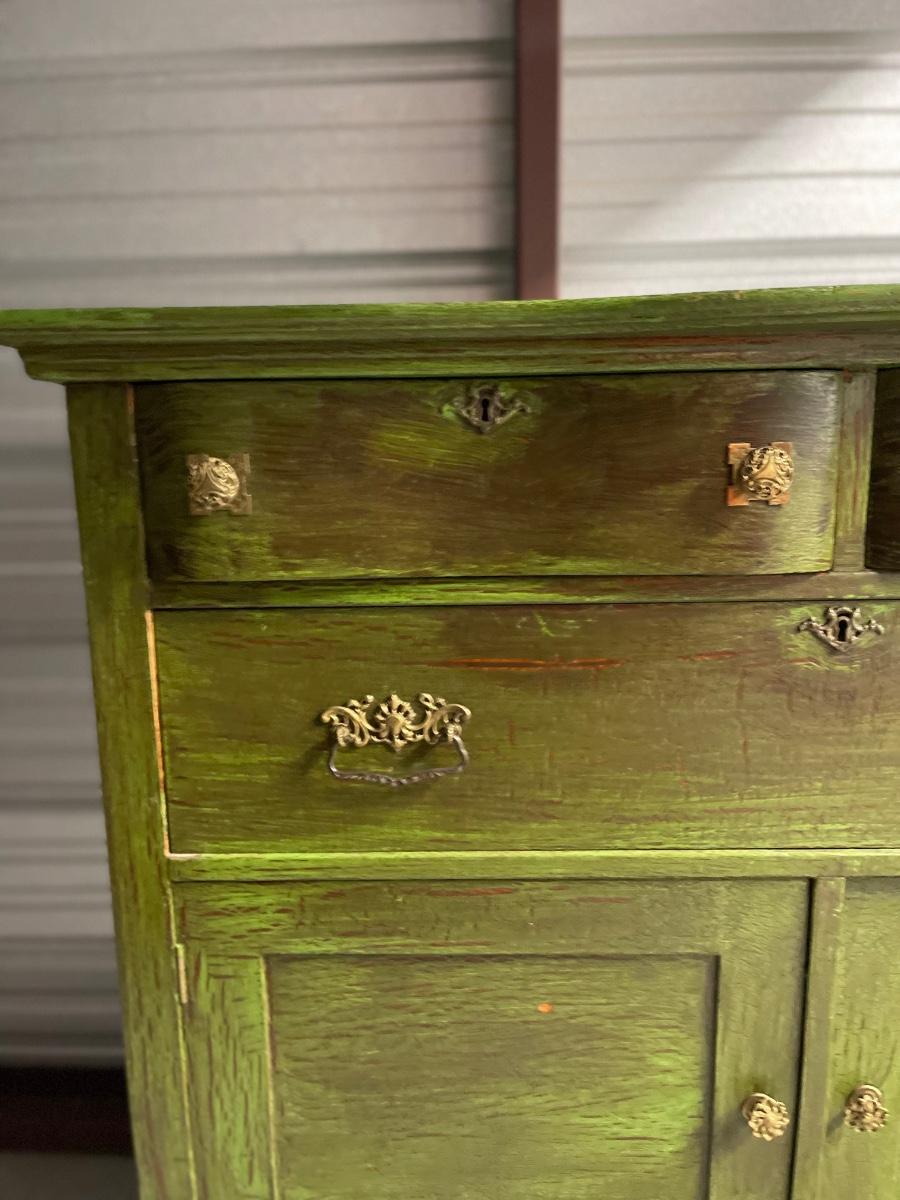 Repainted and distressed with original hardware