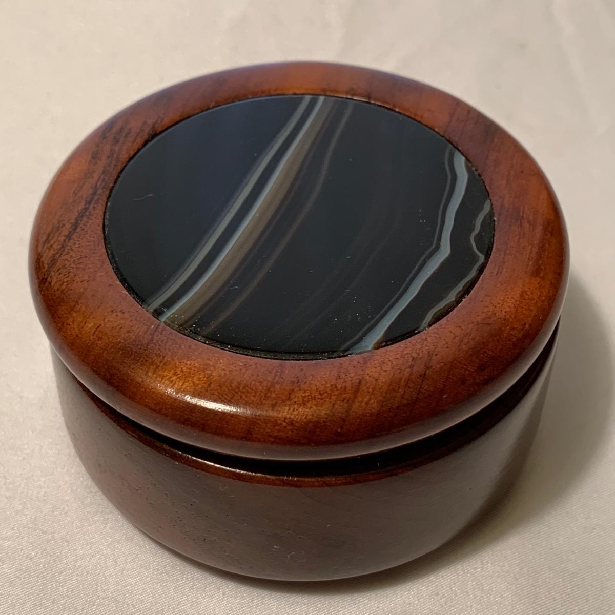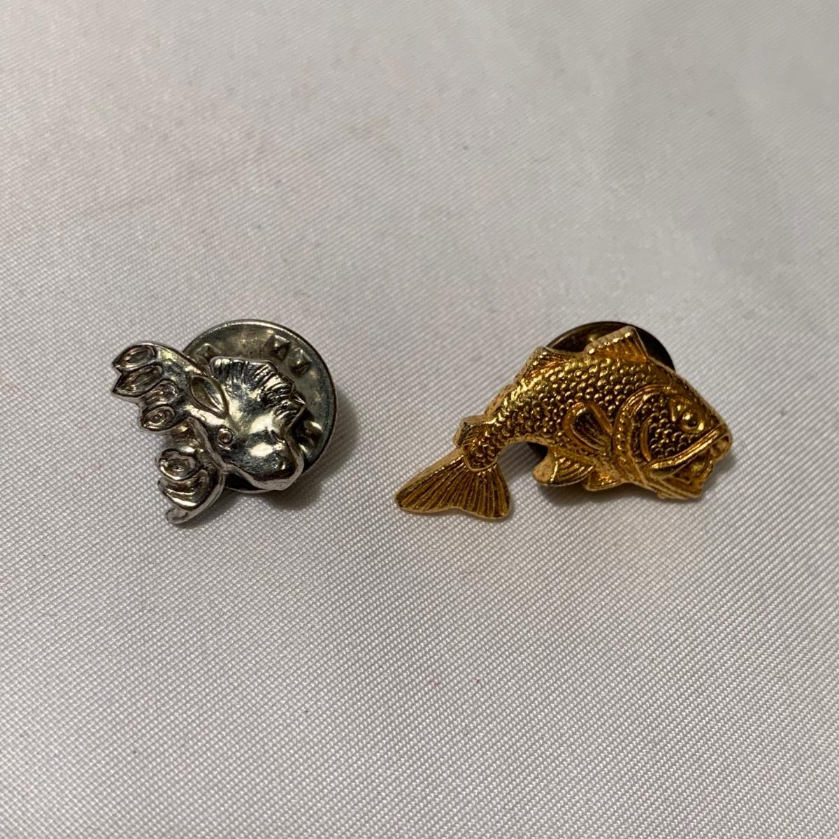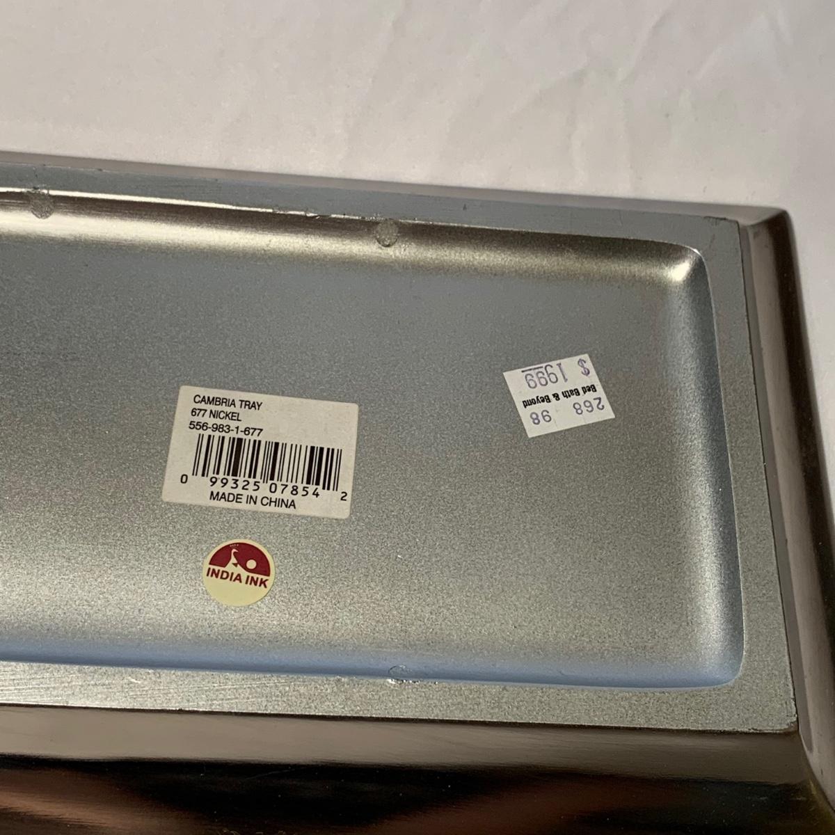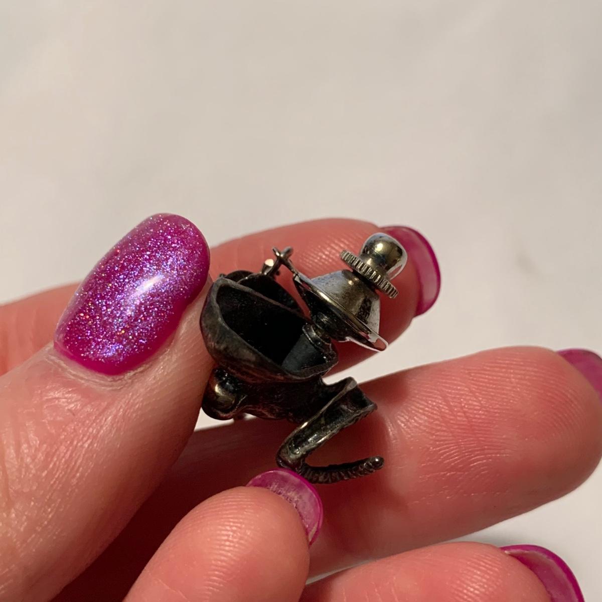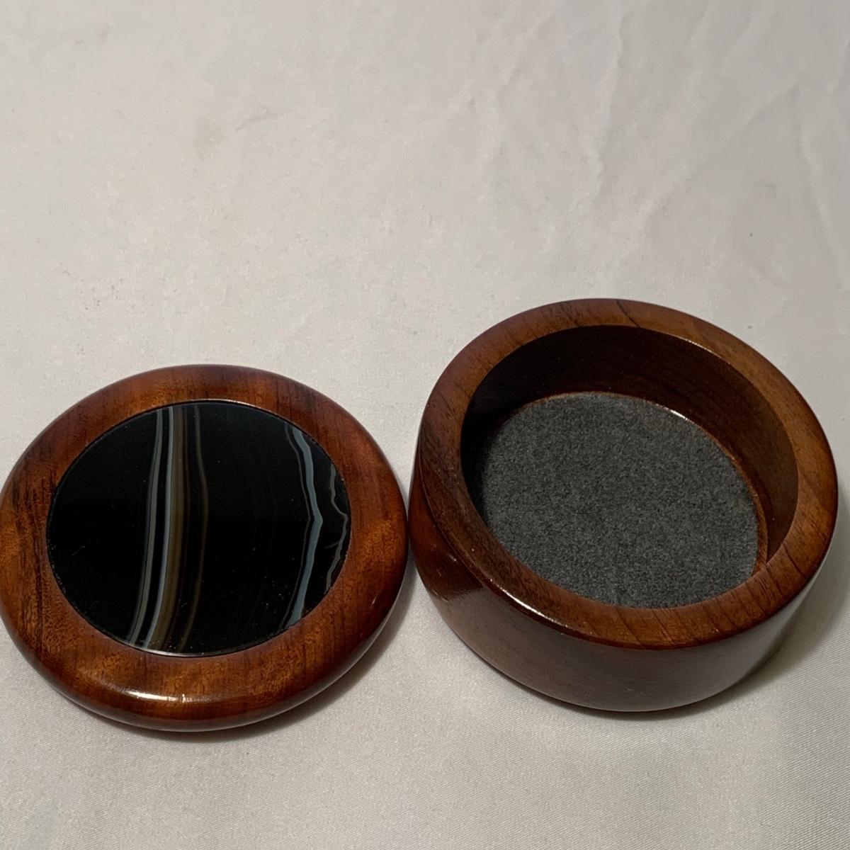 A vintage dresser caddy with a change scoop. Caddy feels like it’s leather and has a soft red inner lining. It measures 11.5” x 8” x 1.5”. It is used and shows some wear and dust inside. Two unique tie tacks and two animal pins. Two pocketknives, both with a little rust. One pair of vintage ornate tweezers. A small rectangular jewelry case that appears to be unused. A small round lidded Brazilian made wooden box and a nickel colored cambria tray. Shipping available.