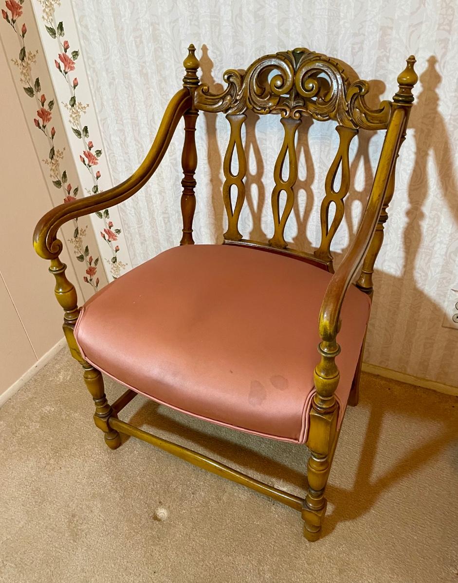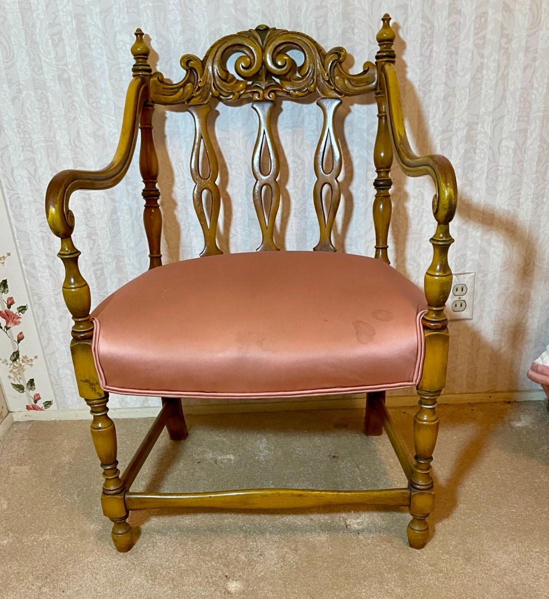Approx. 34” tall at the back x 23” wide x 22” deep. Good condition.