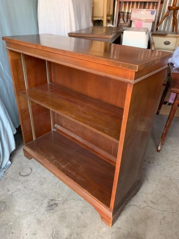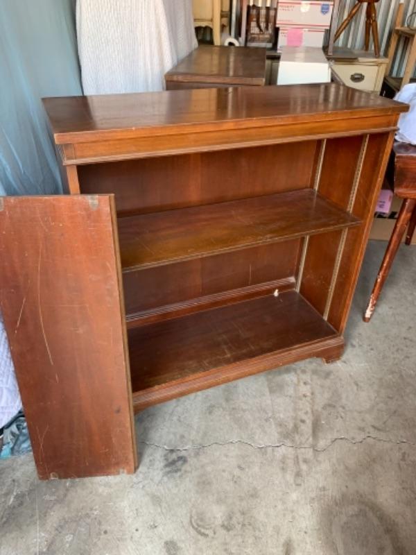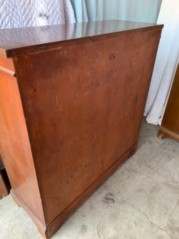 1957, solid wood. Made by Drexel for US Army. 2 adjustable shelves. Excellent condition with typical wear for age. 36” x 13 1/2” x 37 1/2.”