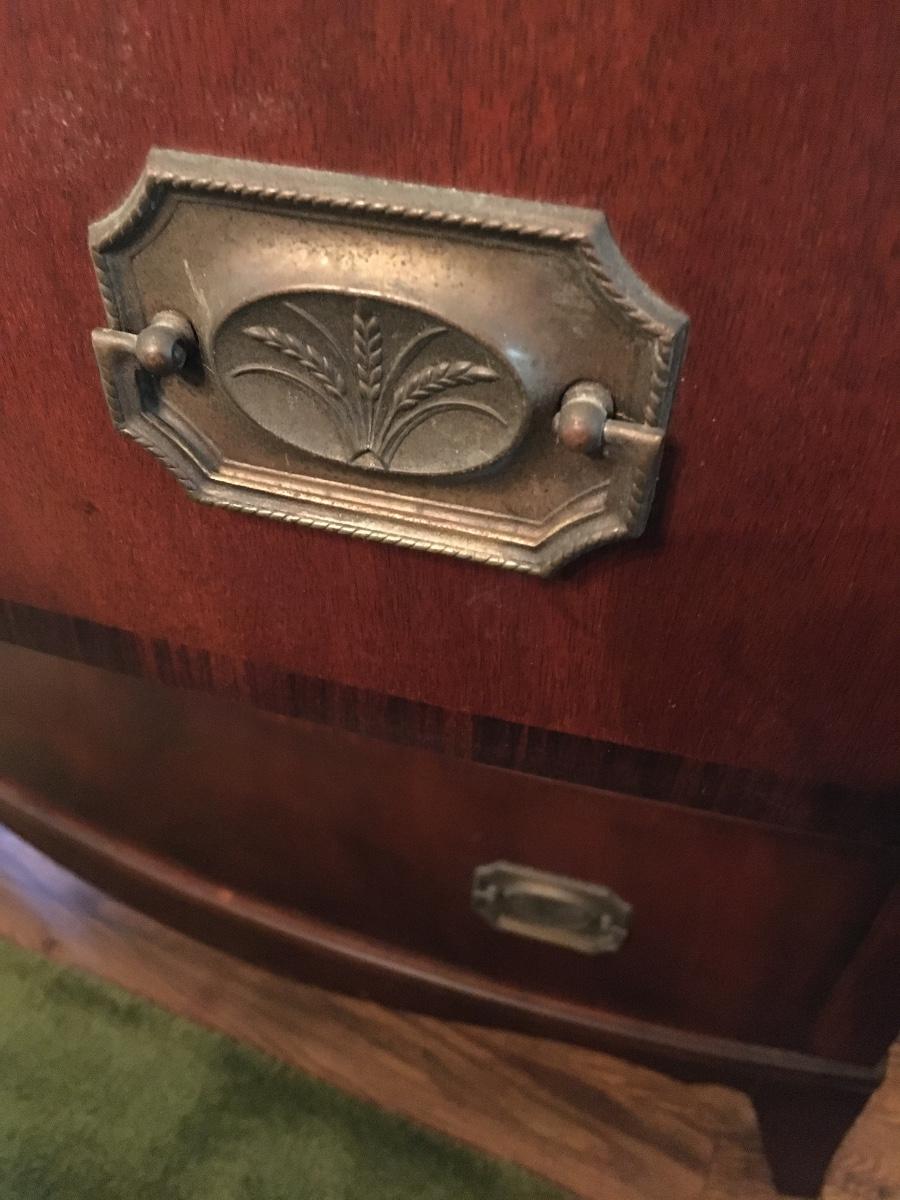 Lovely item which can be used as a dresser or in a dining room. Detailed handles. Measurements 35W 34H 21W