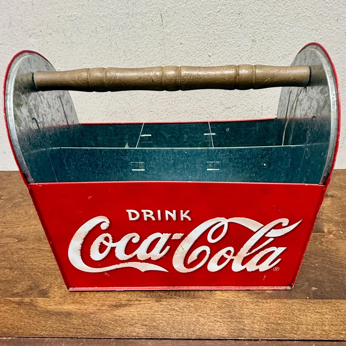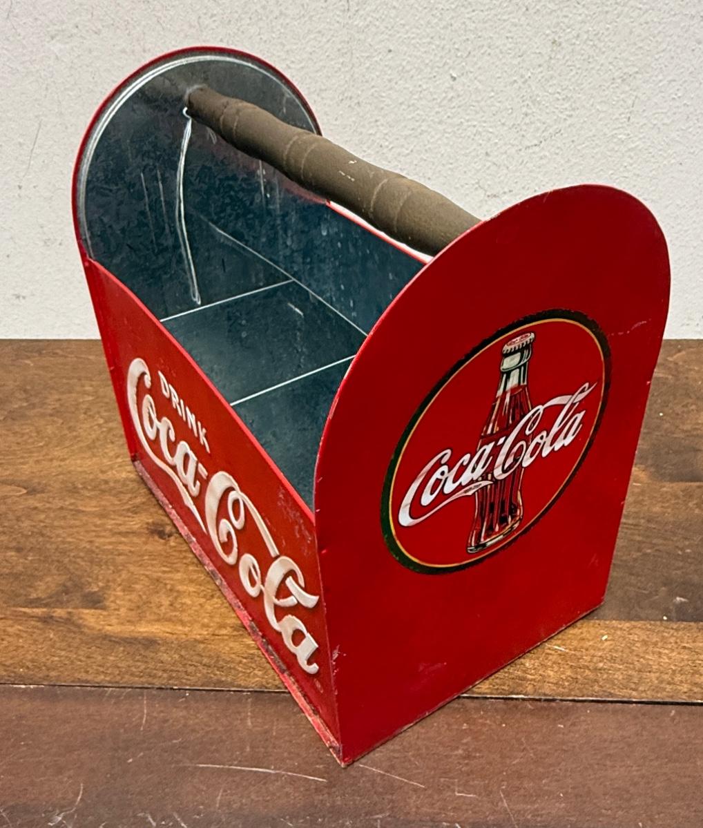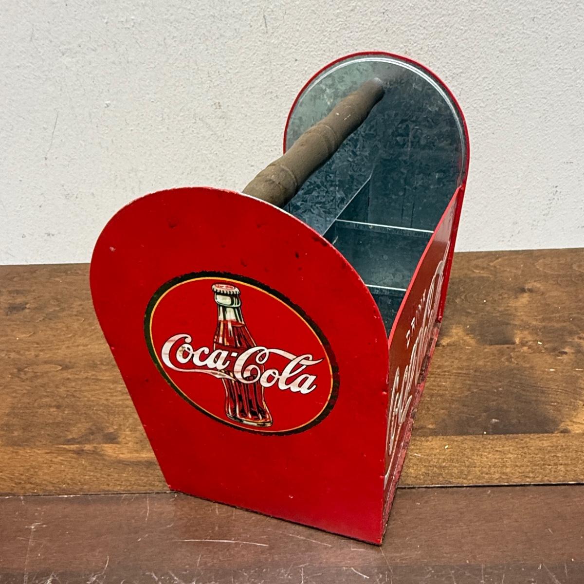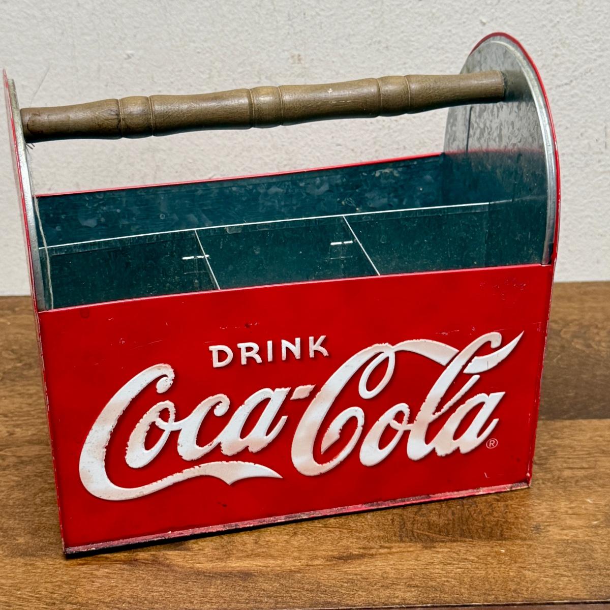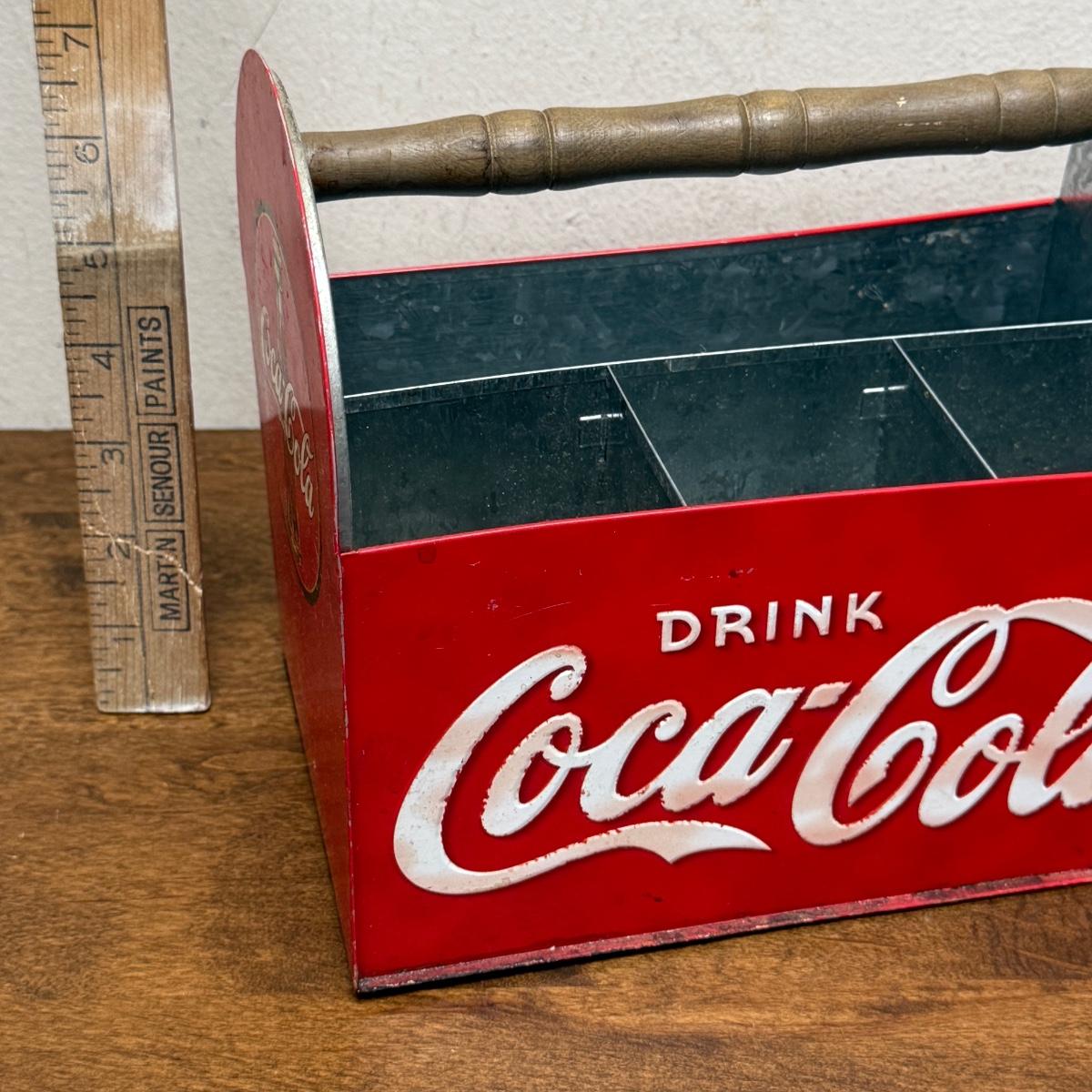 Vintage Drink Coca-Cola Licensed Metal Caddy Utensils Wood Handle Coke
