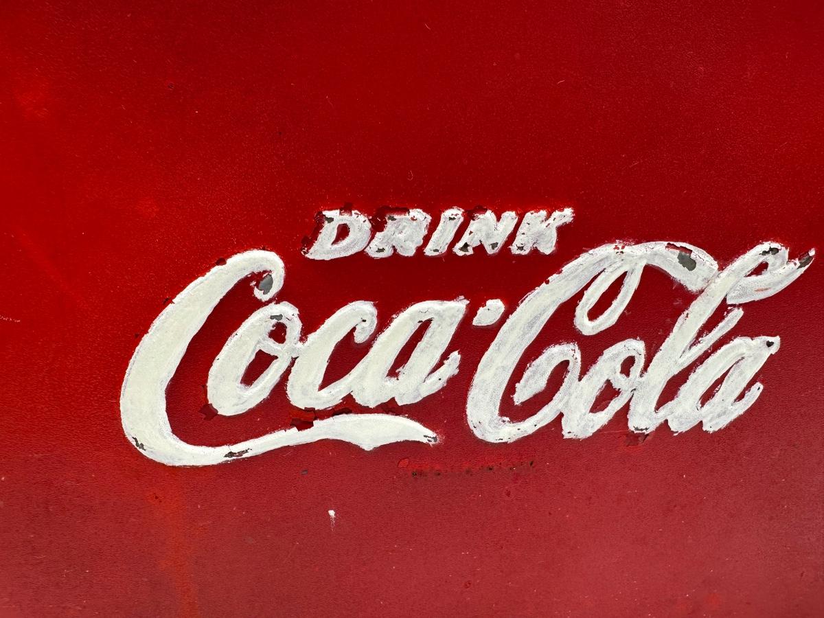 Vintage Coca-Cola metal cooler chest featuring the classic “Drink Coca-Cola” script logo. Heavy-gauge steel construction with hinged lid and original red finish. Great original piece with authentic wear—perfect for display in a garage, bar, man cave, or Coke collection.