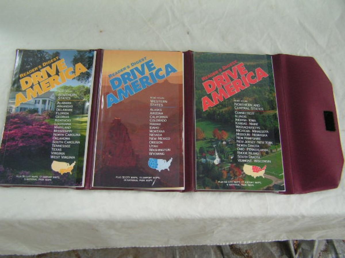 Vintage DRIVE AMERICA from Reader’s Digest. 3 booklet set of tour guide of the U.S.A. Maps of all the mainland states and most major cities. Lots of fold out maps. c.1996