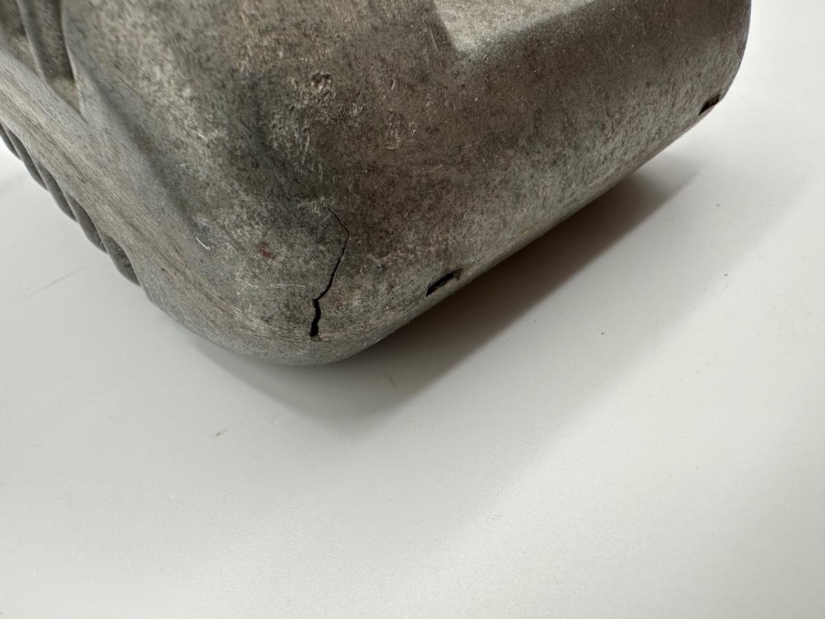 Has a small crack on the bottom. Minor damage.