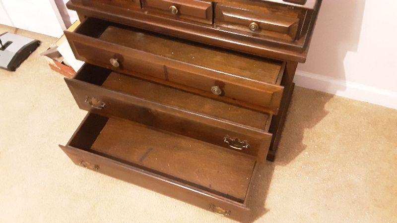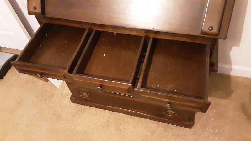 Vintage drop front desk with 6 drawers and inside shelf with cubbies