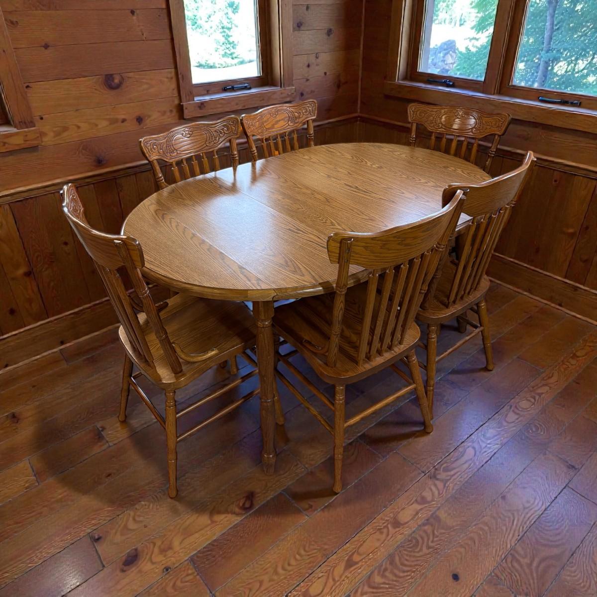Vintage Drop Leaf Dining Table, Removable Leaf, And Six Press Back Chairs