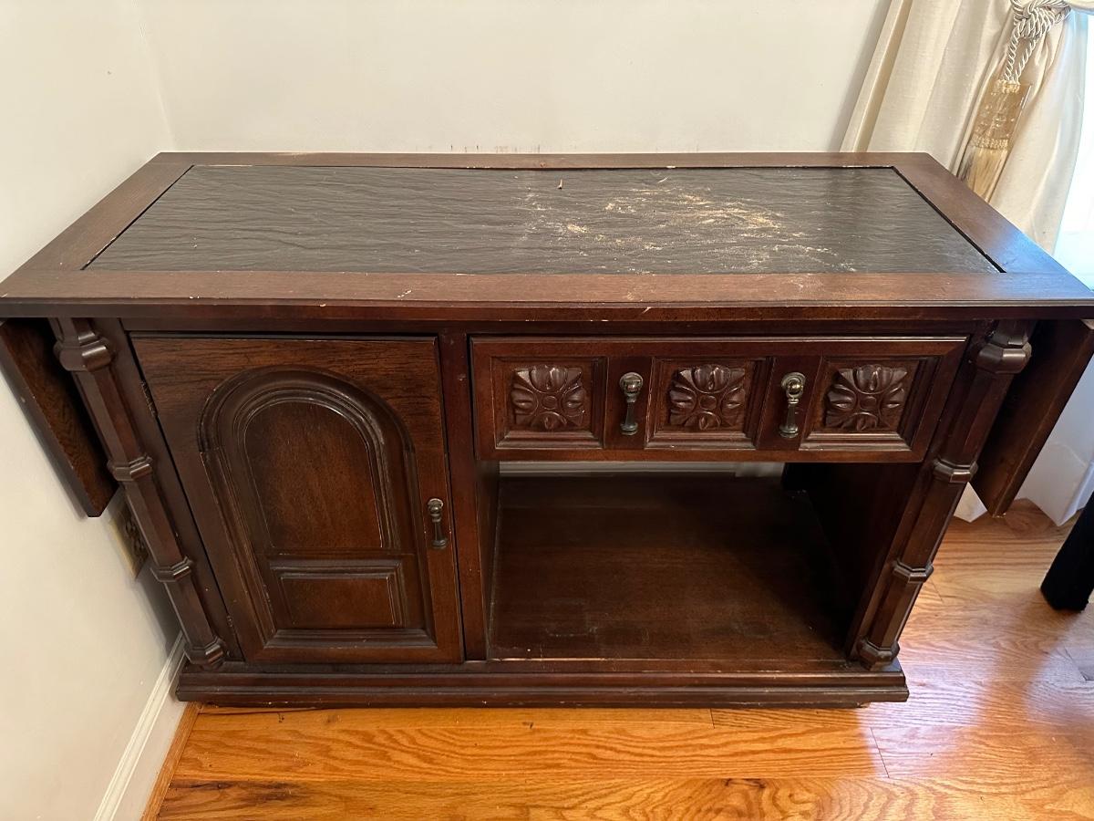 VINTAGE DROP LEAF SERVER, 44X18X31, SEE PHOTS FOR CONDITION