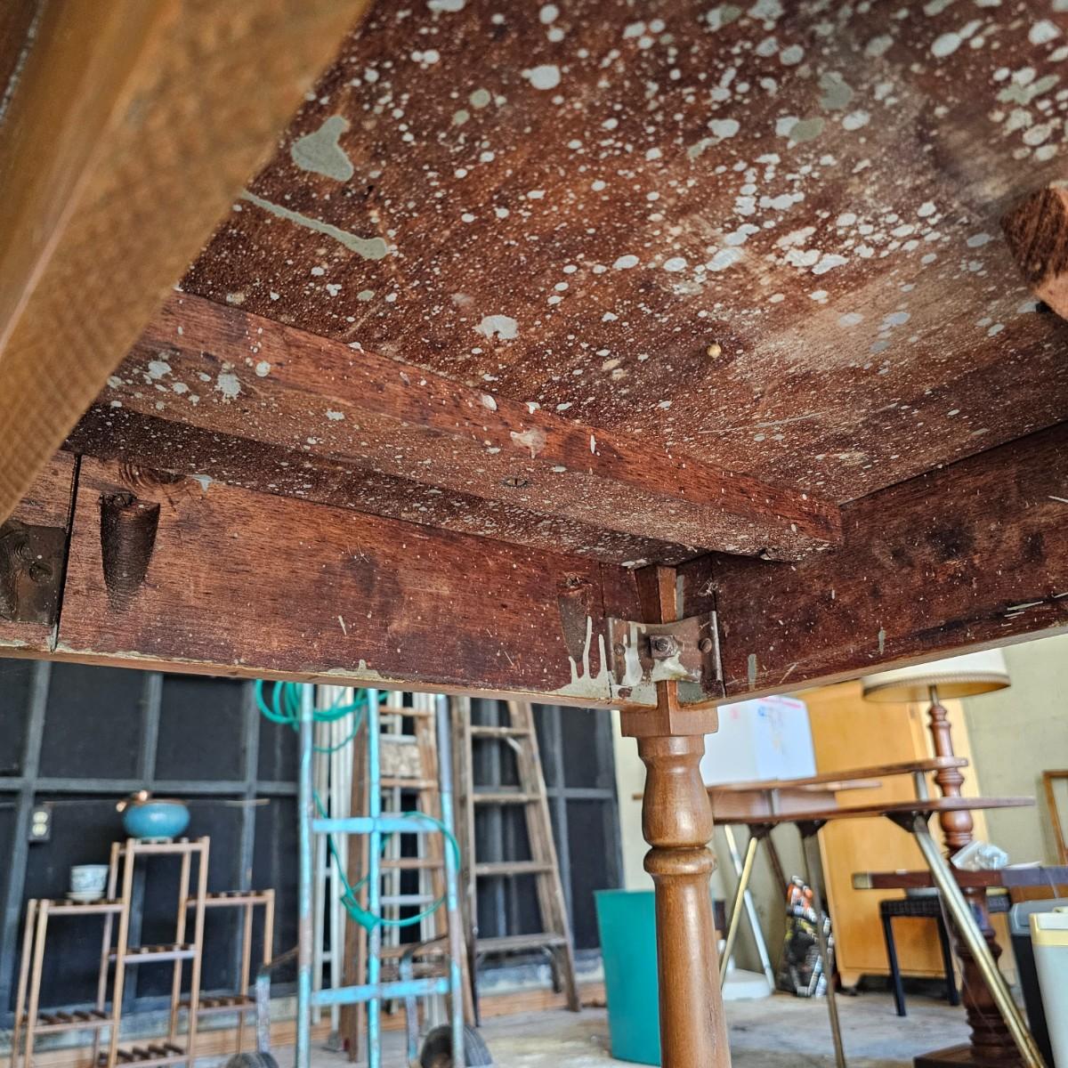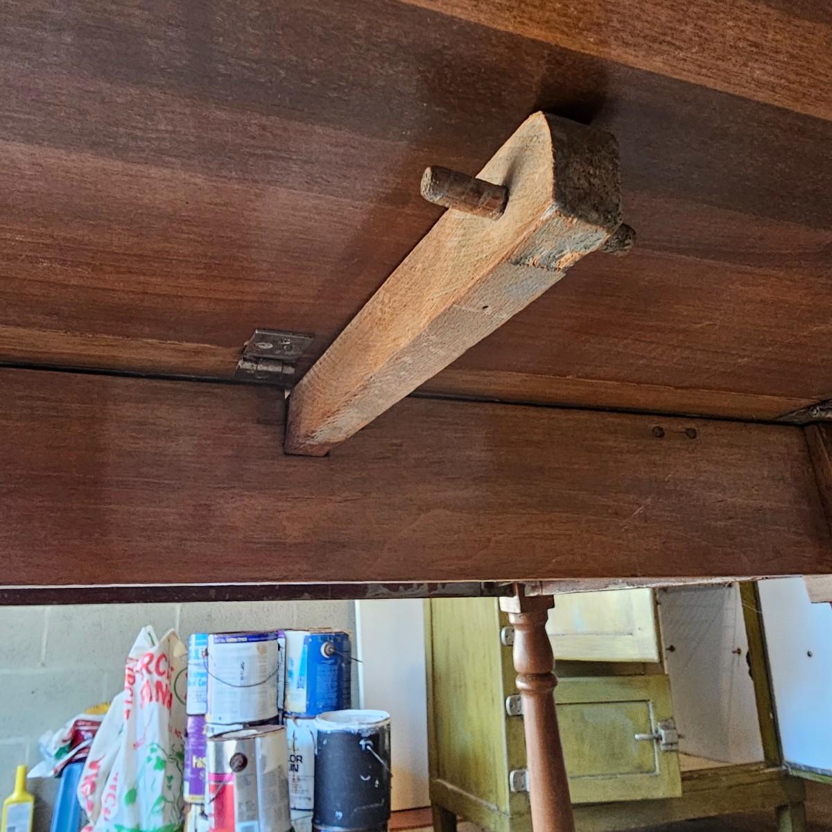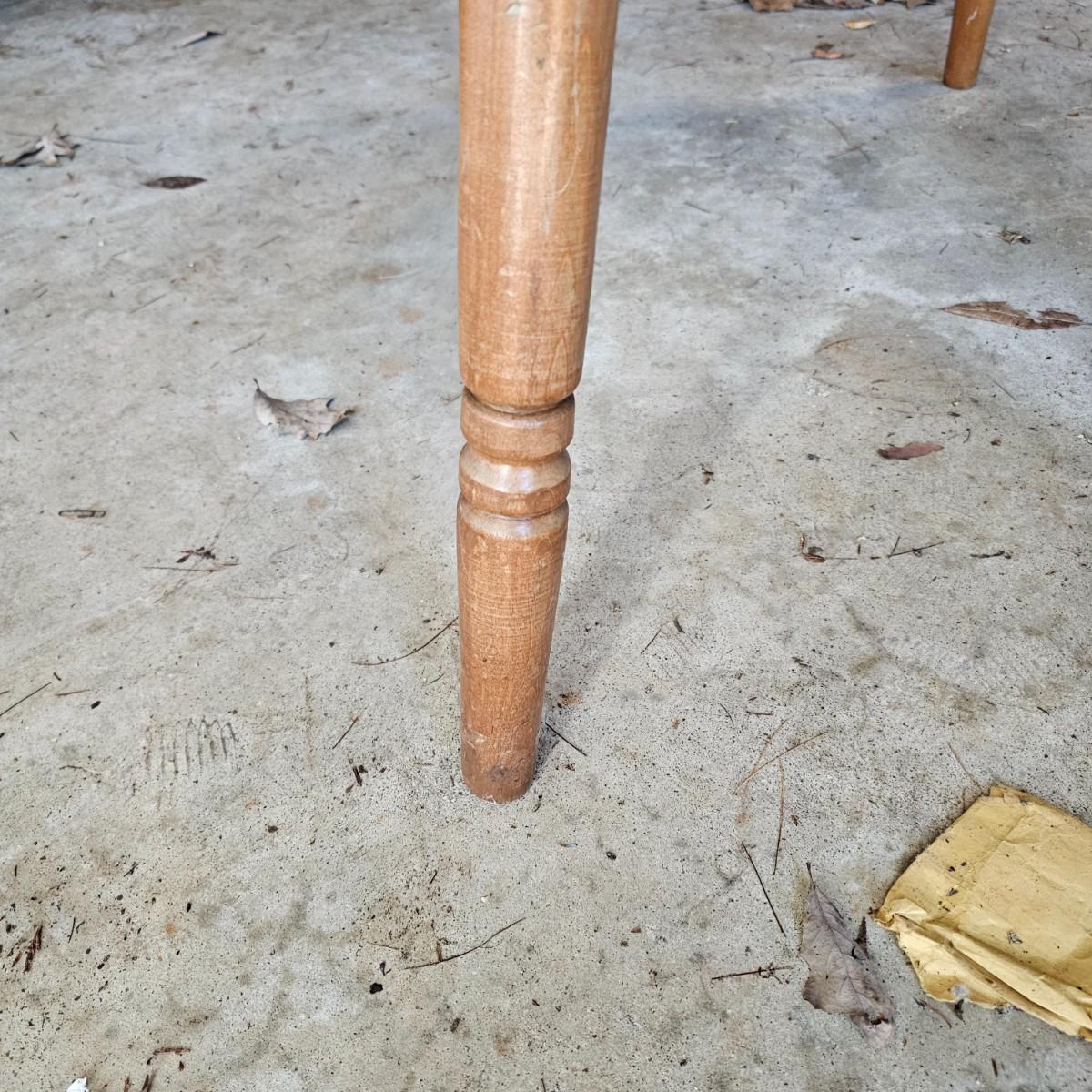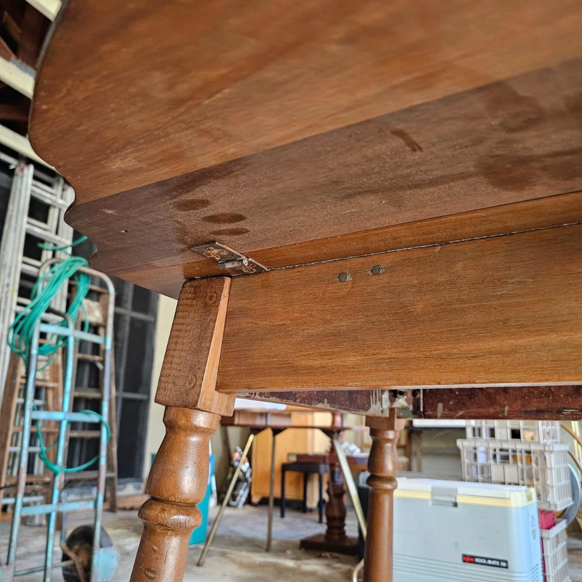 Smaller size drop leaf table with part turned legs, pull out stops to hold leaves when open. Table measures 21" x 35" x 29"H closed and 41" x 35" x 29" open. Some minor blemishes and nicks on top and sides. See photos for details. Local pickup only.
