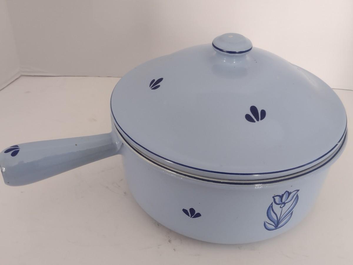 Vintage Dru Brand Enamel Lidded Pan Holland