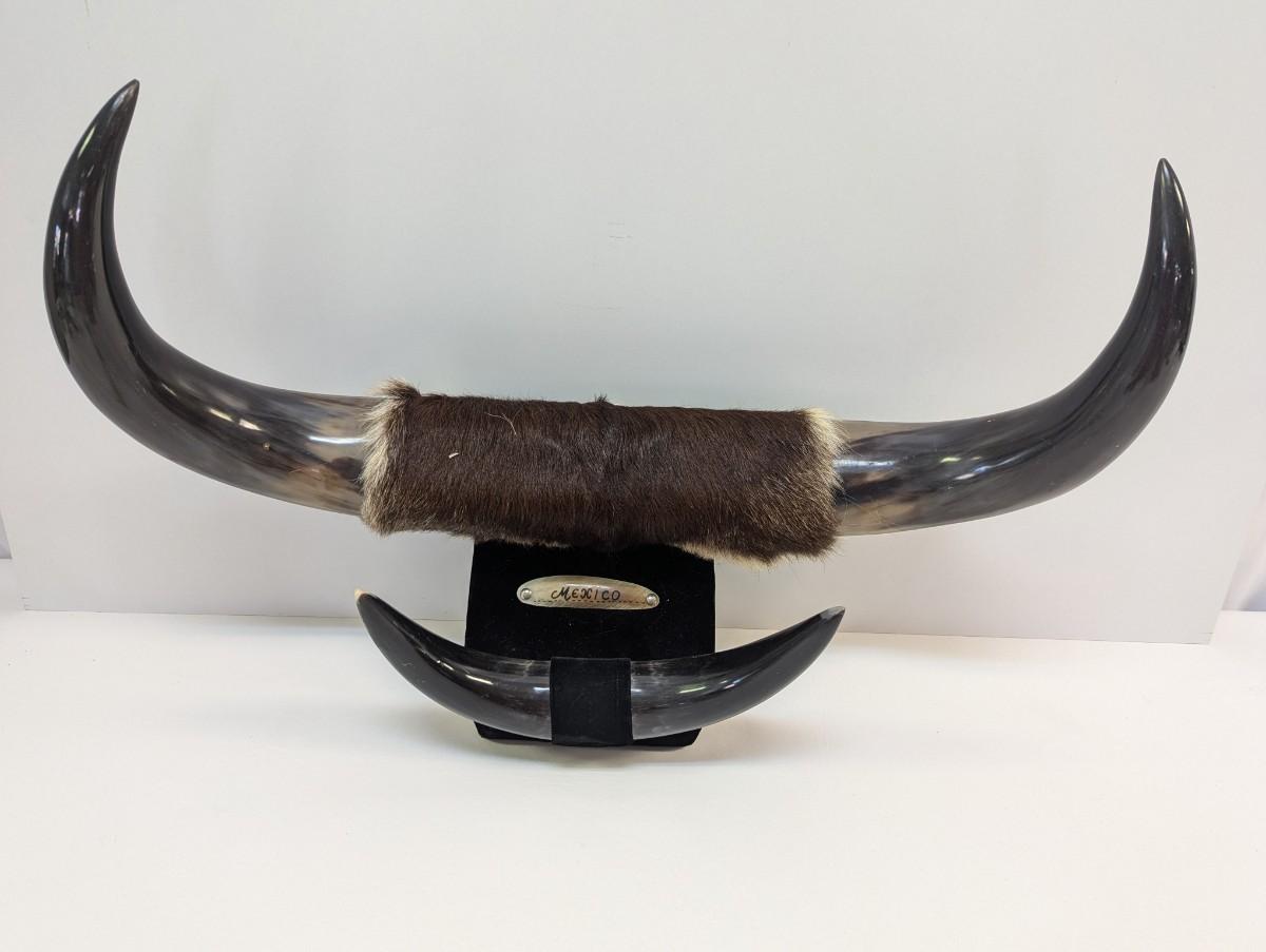 Vintage Dual Mounted Polished Bull Horns