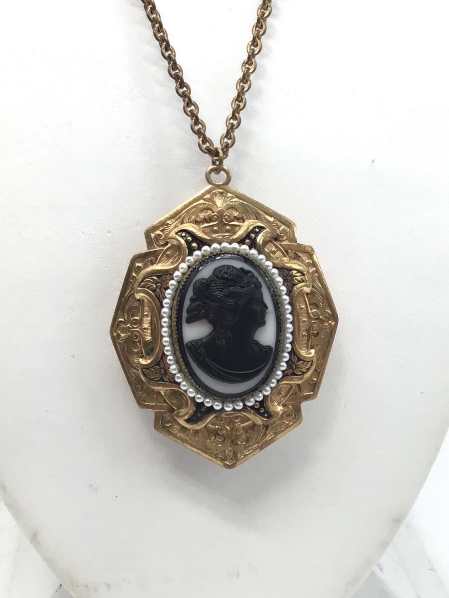 Vintage Dual Photo Pendant Heavy Locket with chain