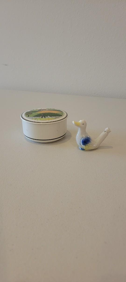 Villeroy & Boch porcelain covered dish. Ceramic duck whistle vintage.