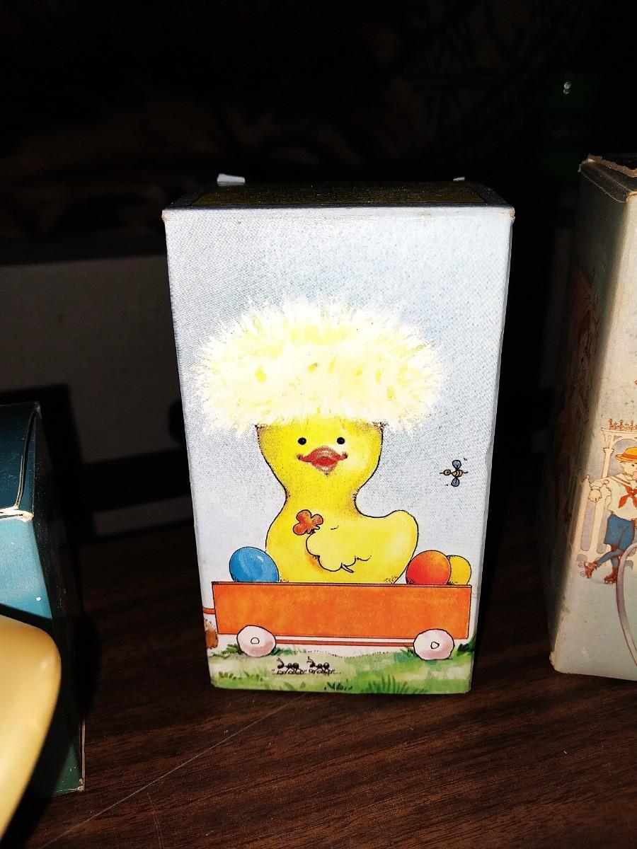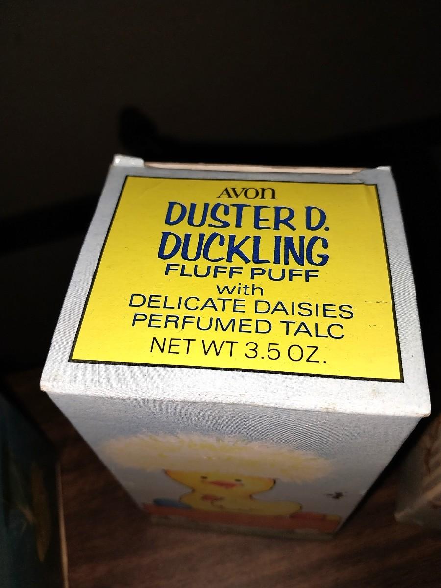 VINTAGE DUCKLING FLUFF PUFF TALC-MUSHROOM-POODLE-ROLL A HOOP-LOVE MUG