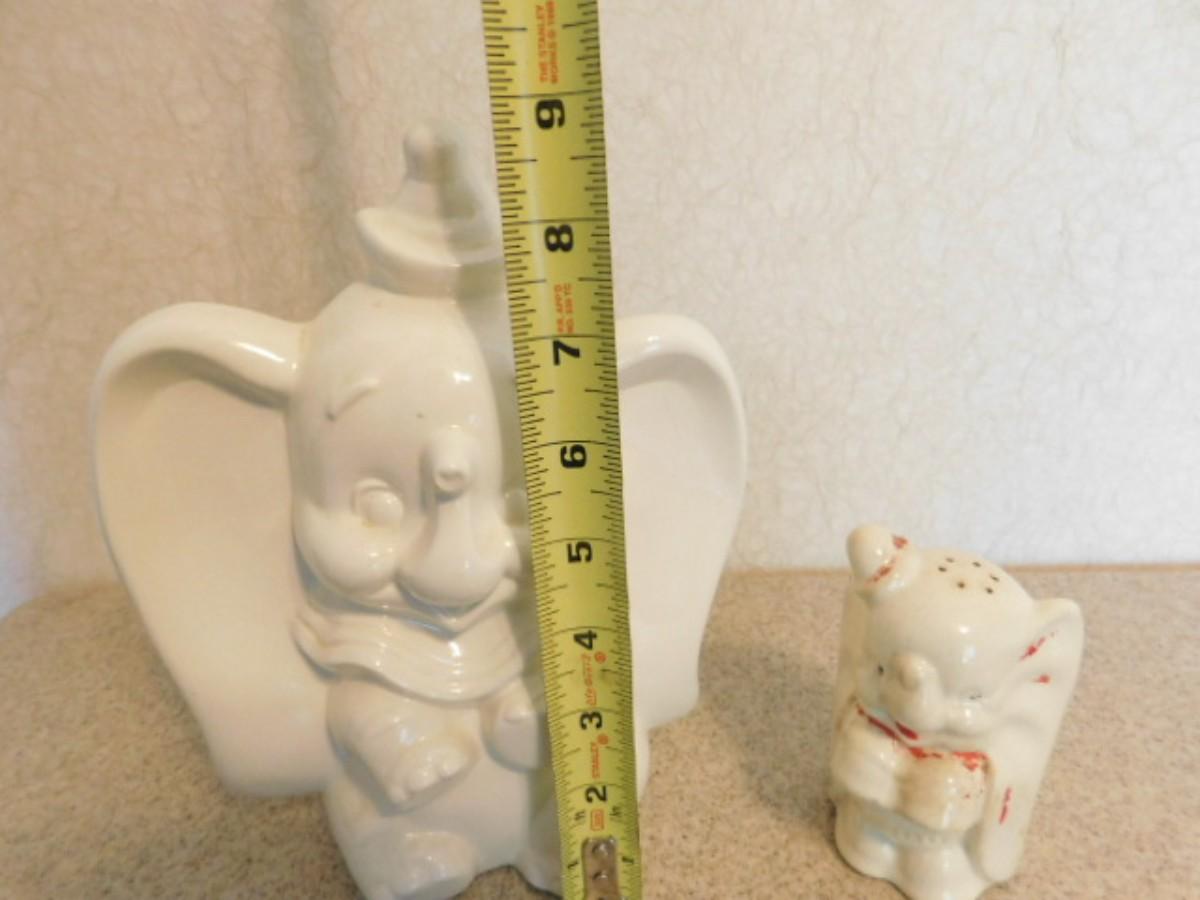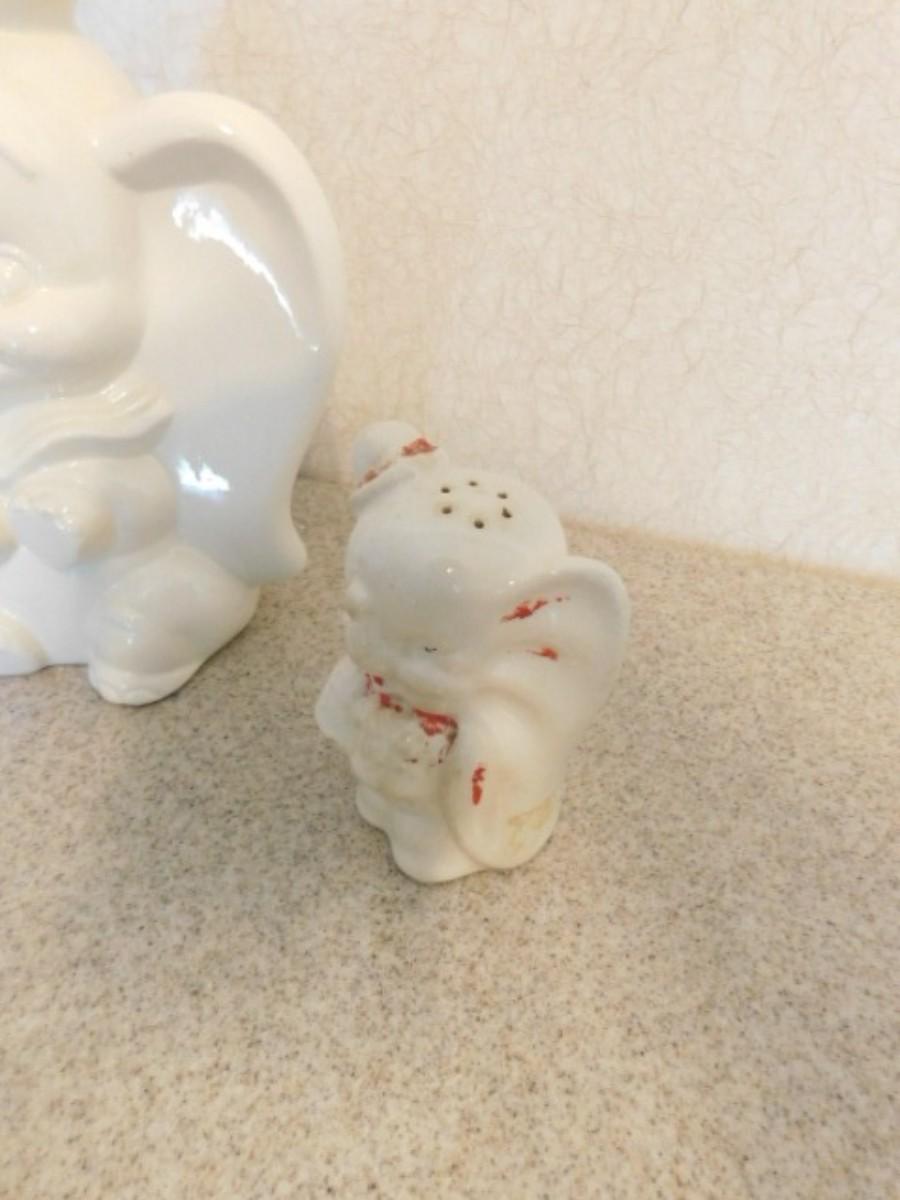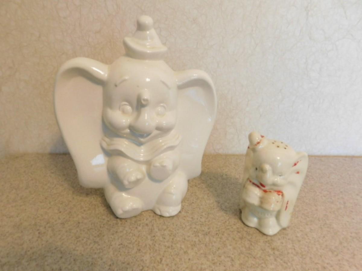 Vintage Dumbo Ceramic Statuette with Disney Mark and Dumbo Salt Shaker