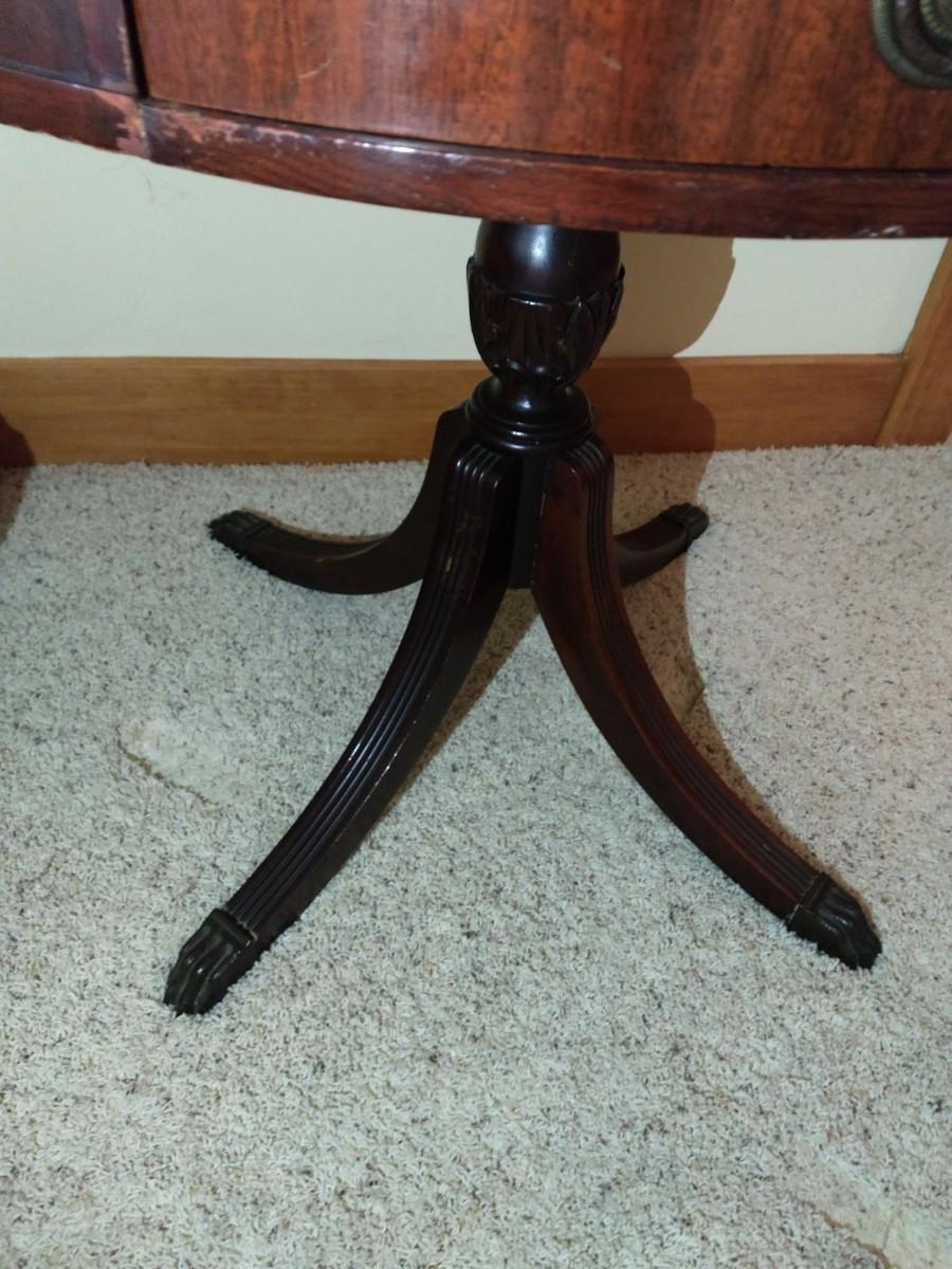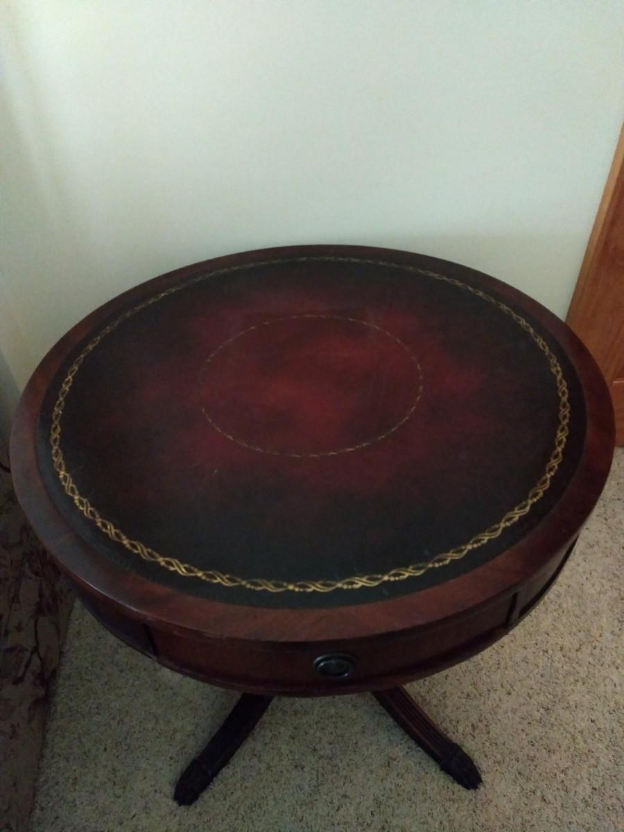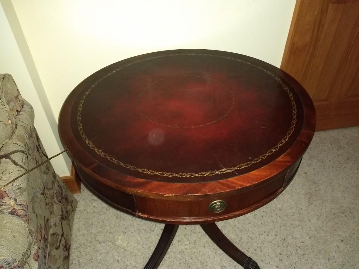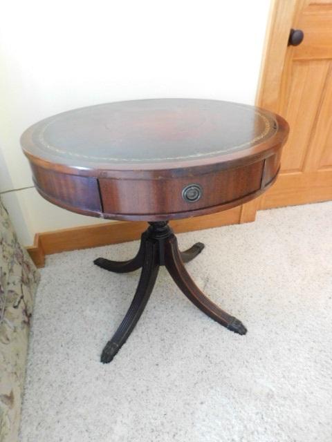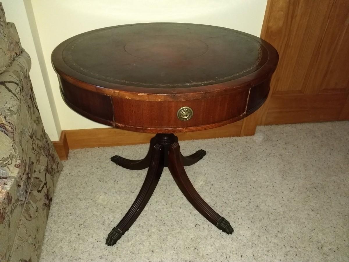 Vintage Duncan Phyfe Drum Table has some wear and scratches downstair