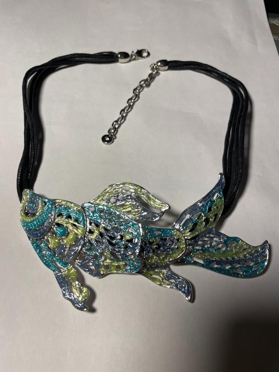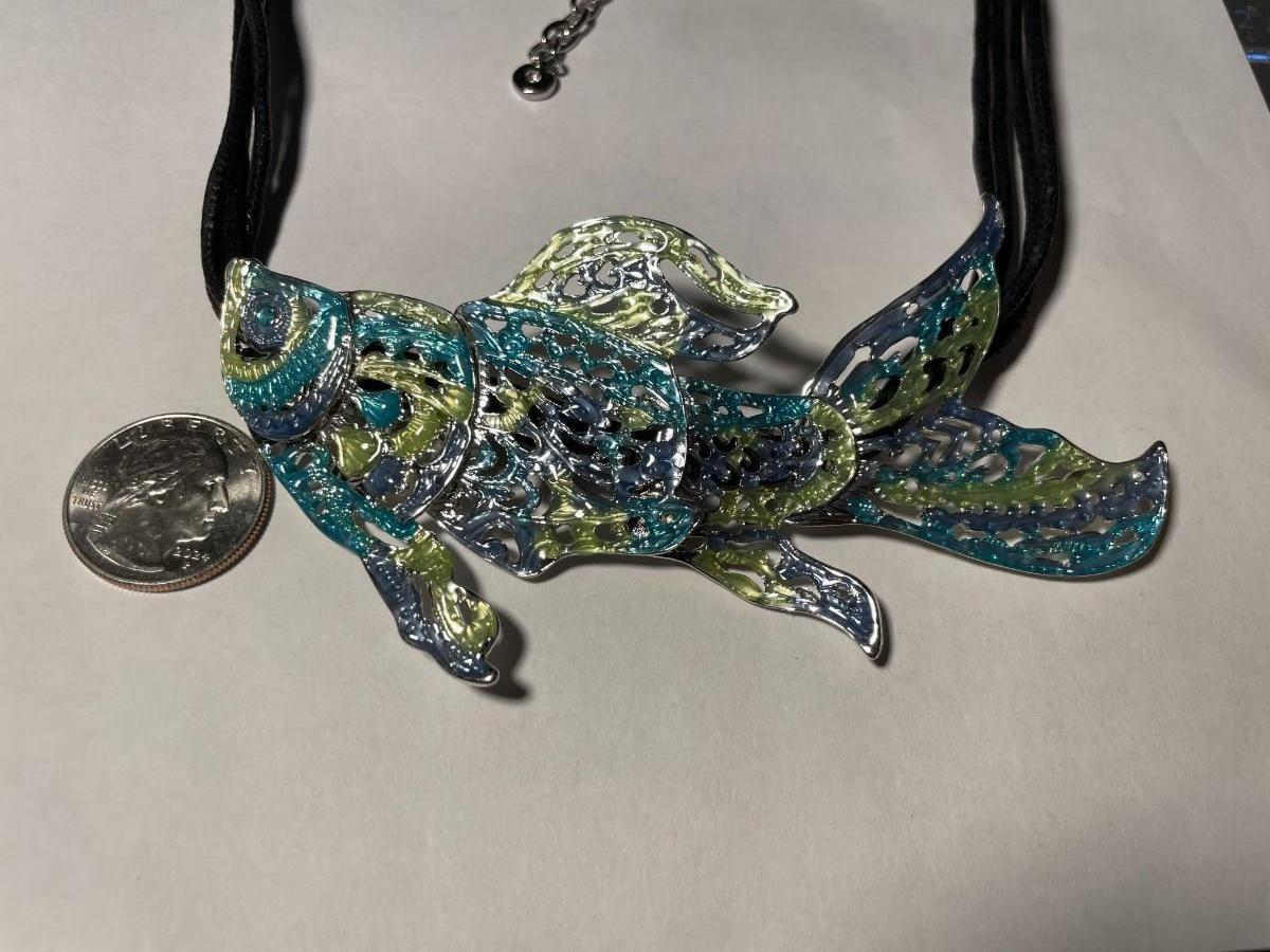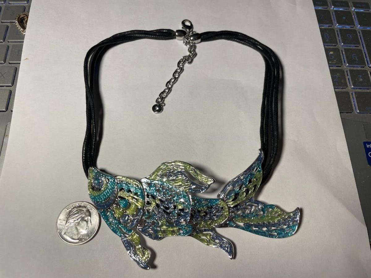 Vintage Dune & Willow Holographic Metallic Enameled Fish Necklace 16+ Adjustable as Pictured.