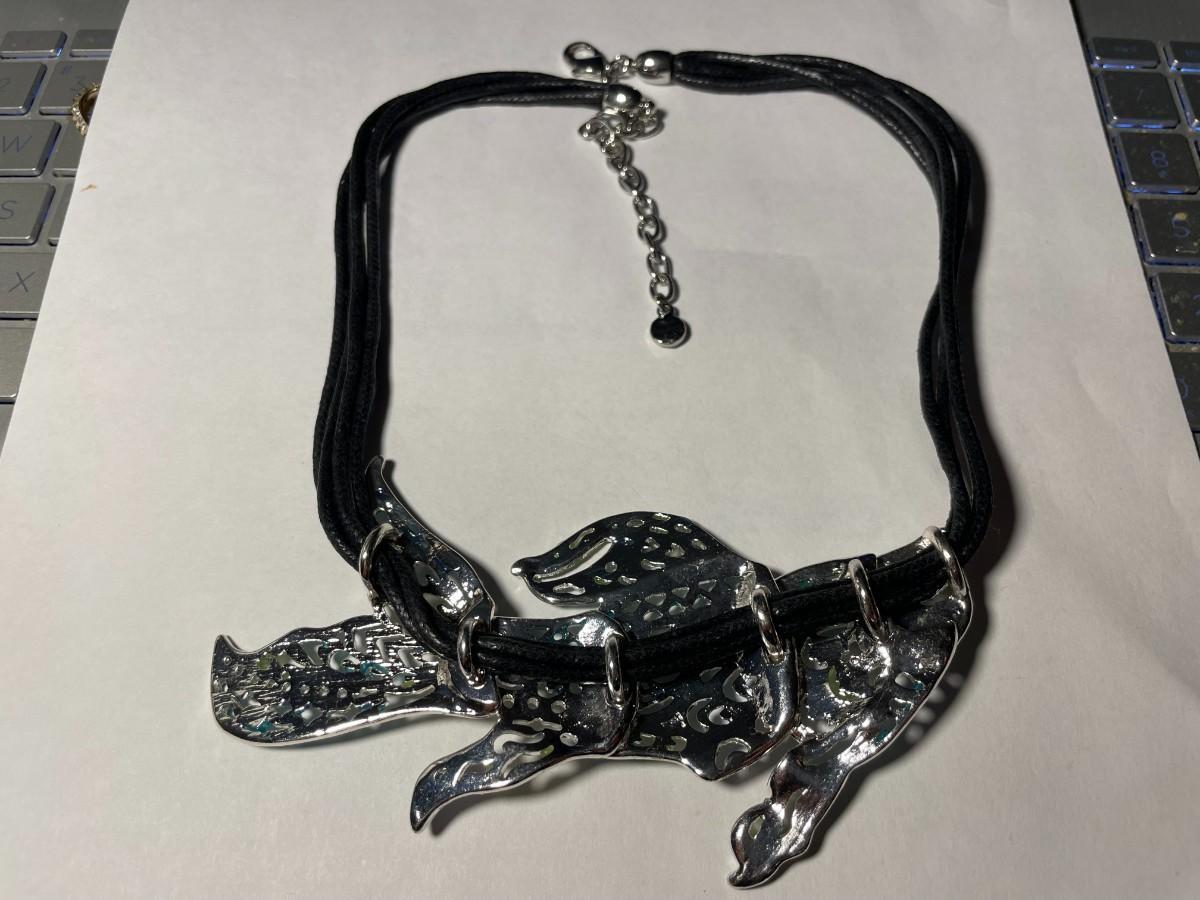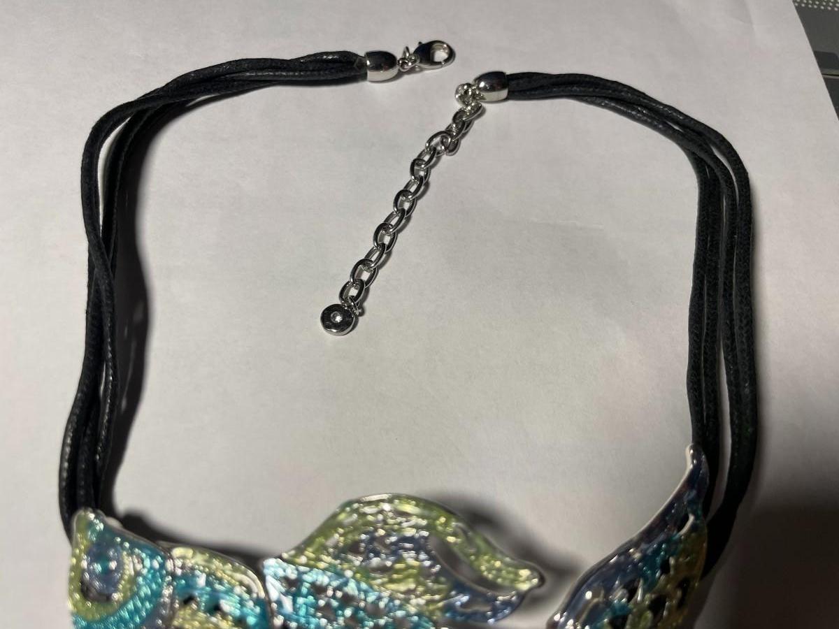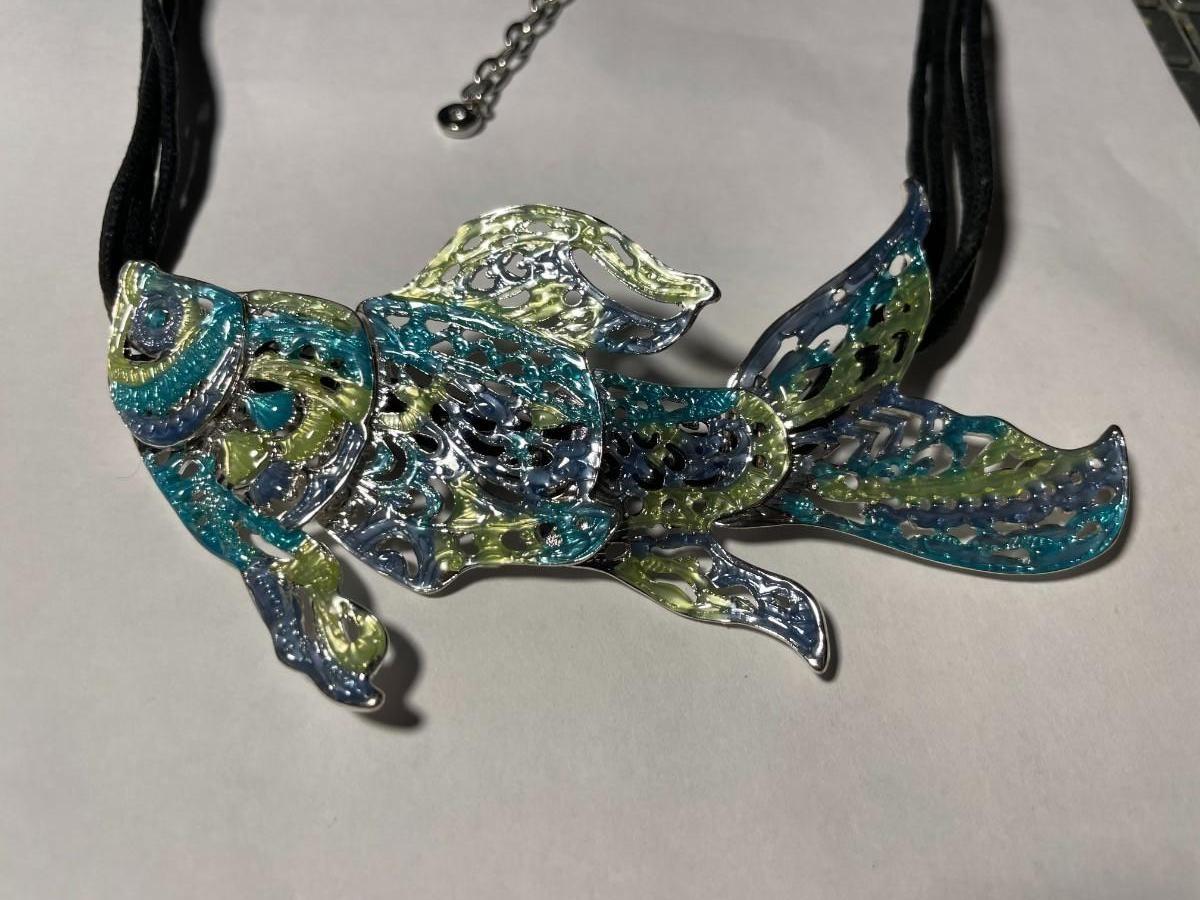 Vintage Dune & Willow Holographic Metallic Enameled Fish Necklace 16+ Adjustable as Pictured.