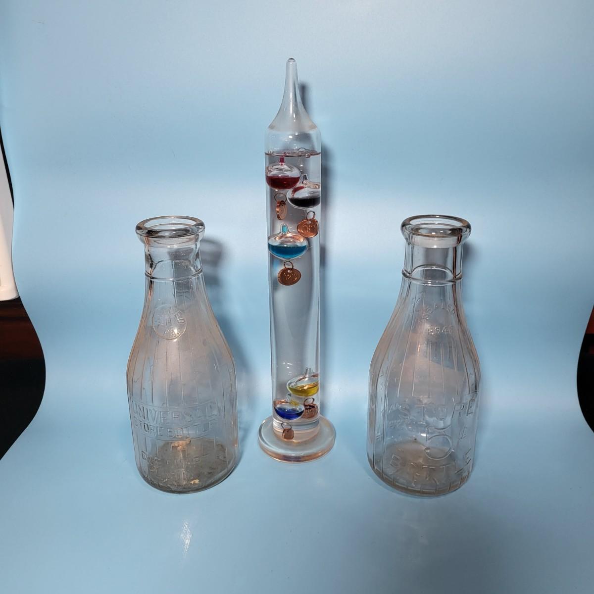 Vintage Duraglas Milk Bottles & Galileo Thermometer Lot