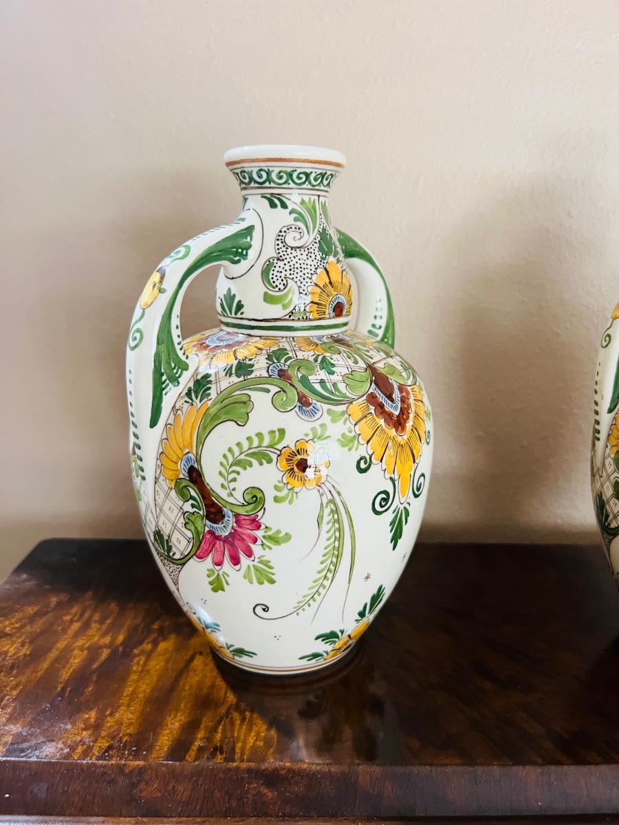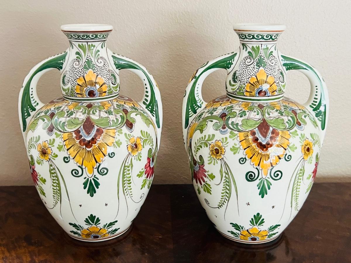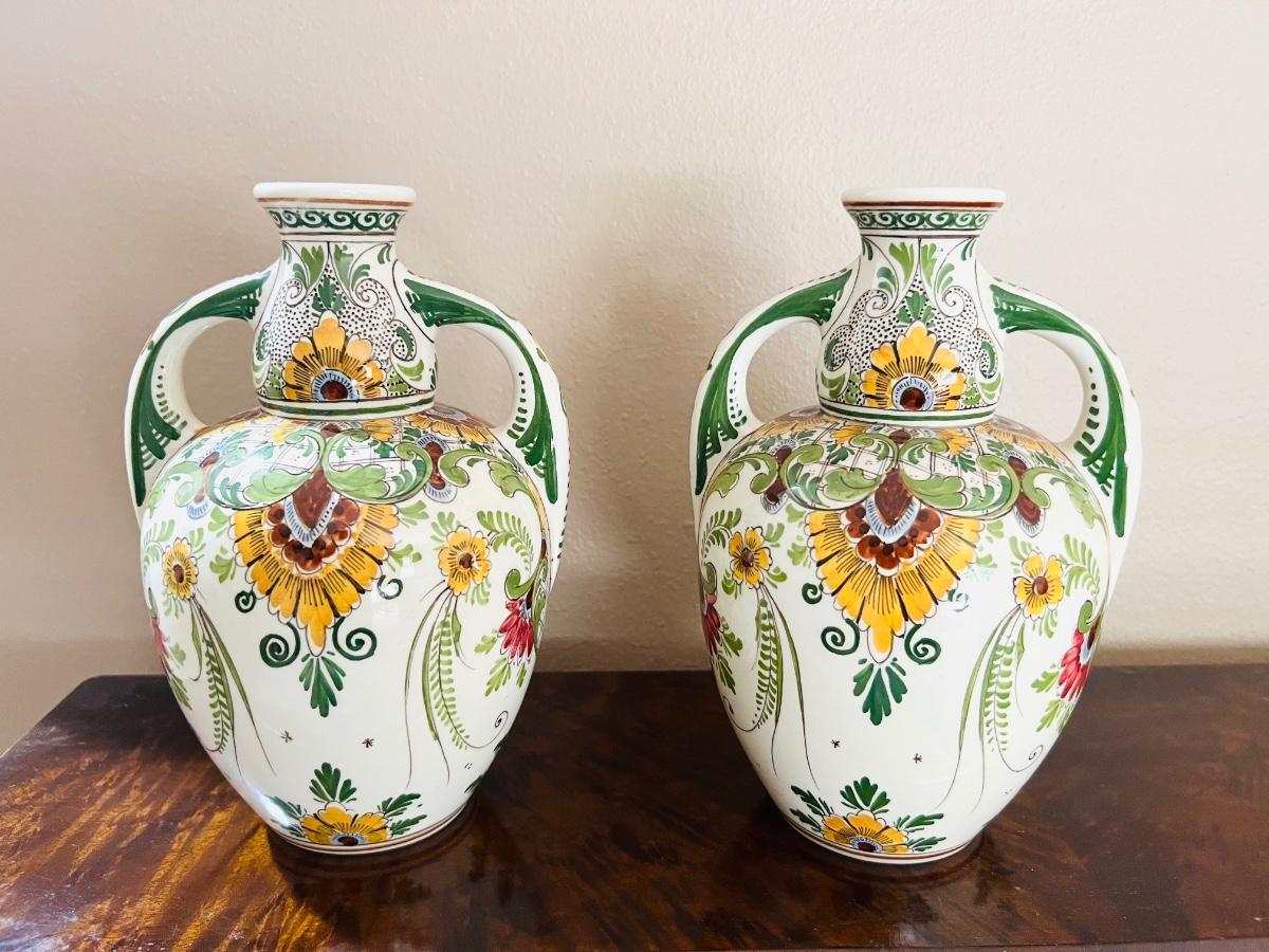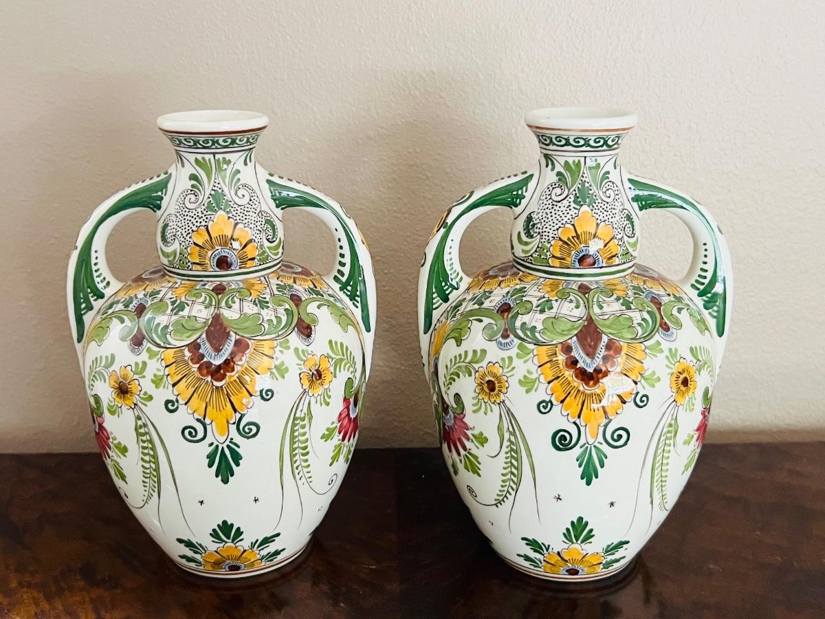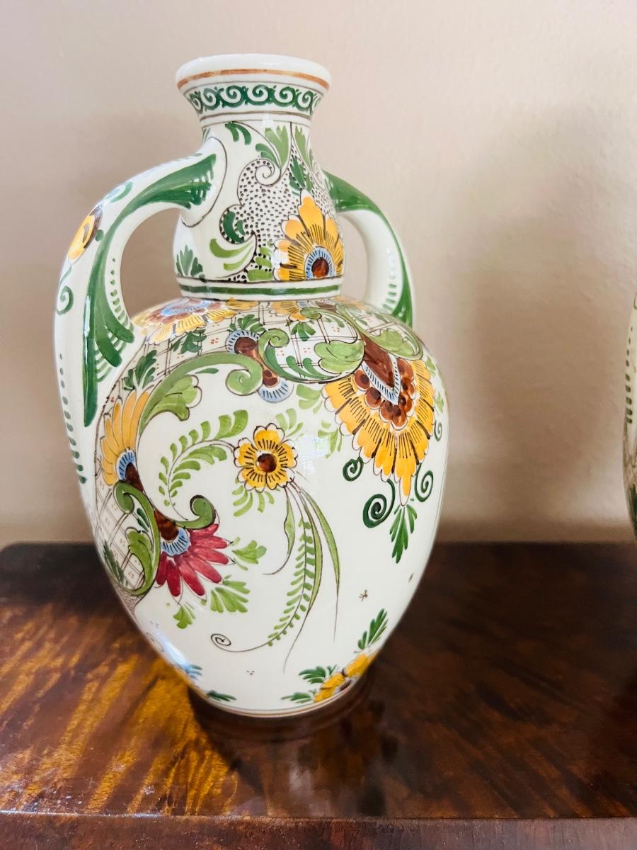 Two Vintage Dutch Delft Pottery IVORA-GOUDA #292 from Germany. These are stunning! Measures 8 inches tall.