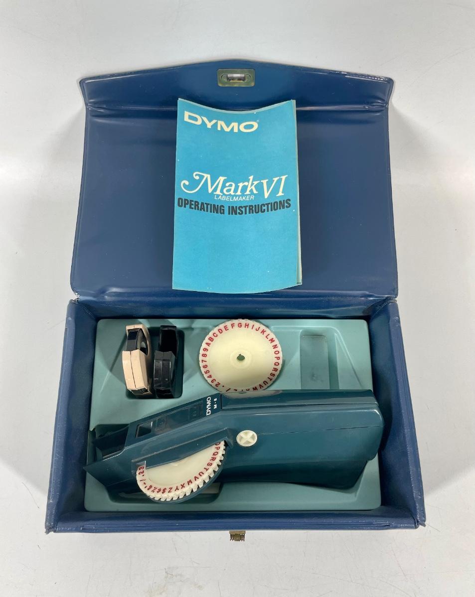 Vintage Dymo Mark 6 Labeler With storage case and user manual.