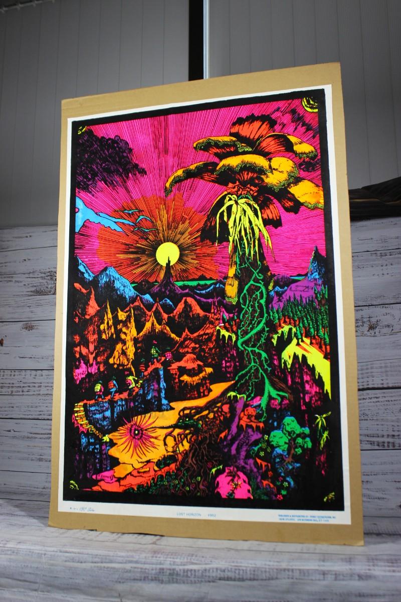 Vintage EA Mattila Lost Horizon Black Light Poster, there are no rips or tears to the poster and is in good vintage condition. Check pictures for more details and for sizing.