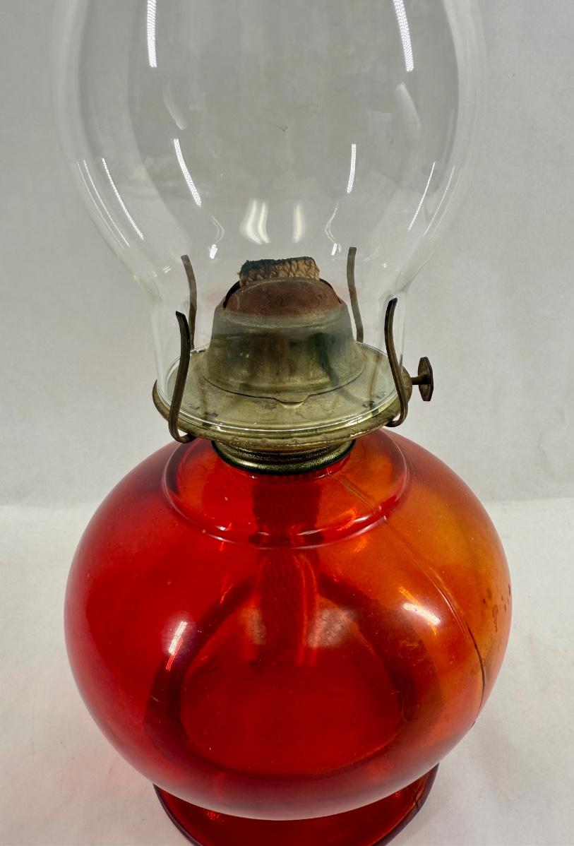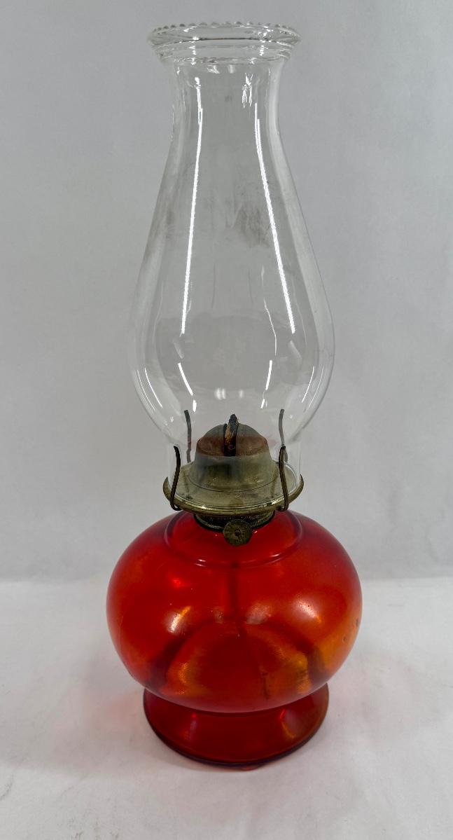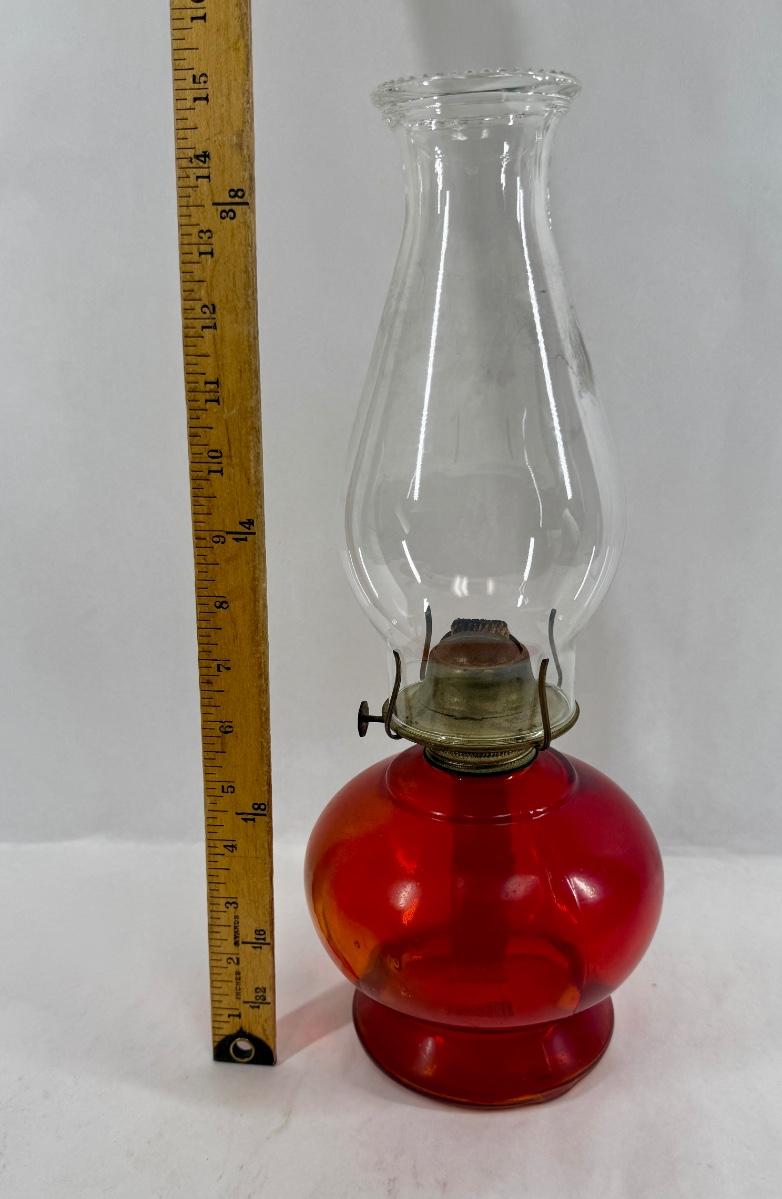 Vintage Eagle Hurricane Oil Lamp with clear glass chimney and Ruby Red Glass Base