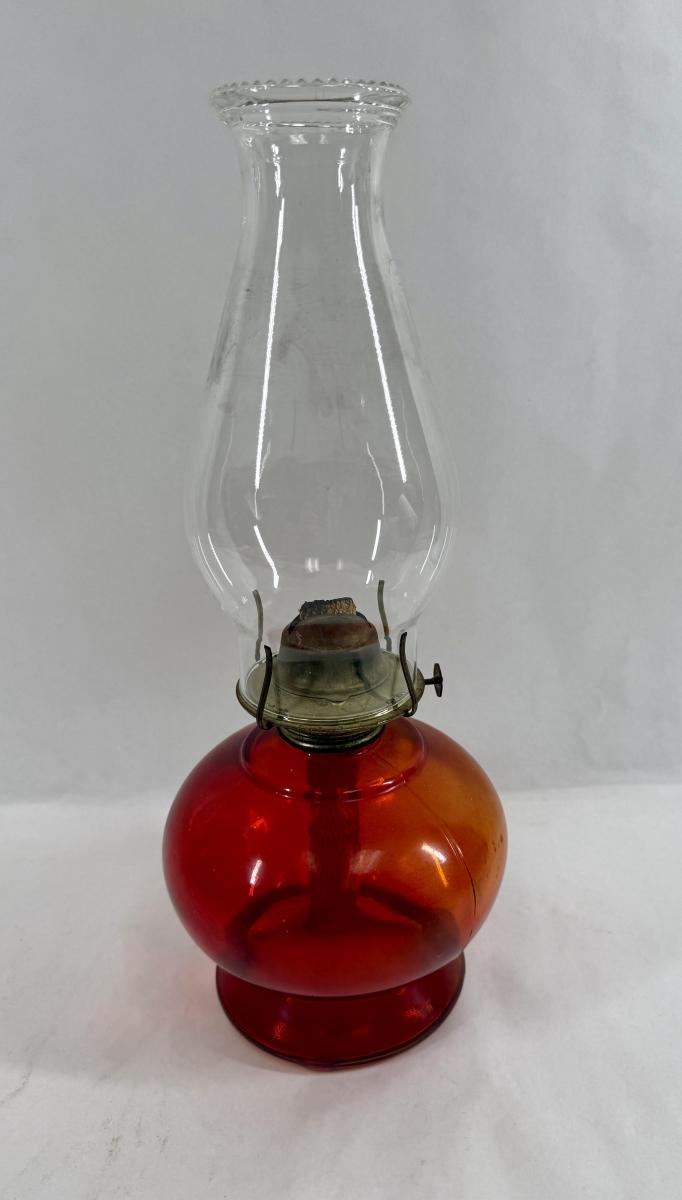 Vintage Eagle Hurricane Oil Lamp with clear glass chimney and Ruby Red Glass Base