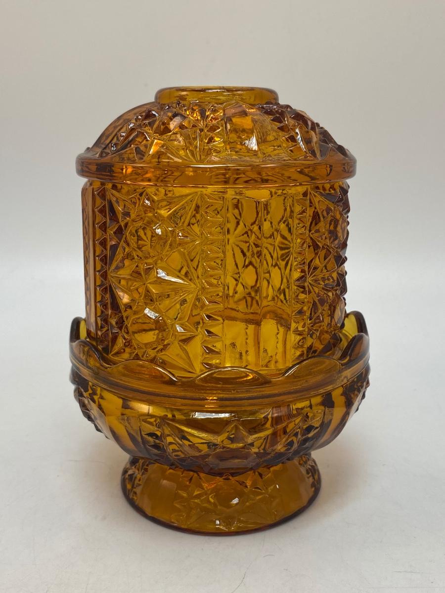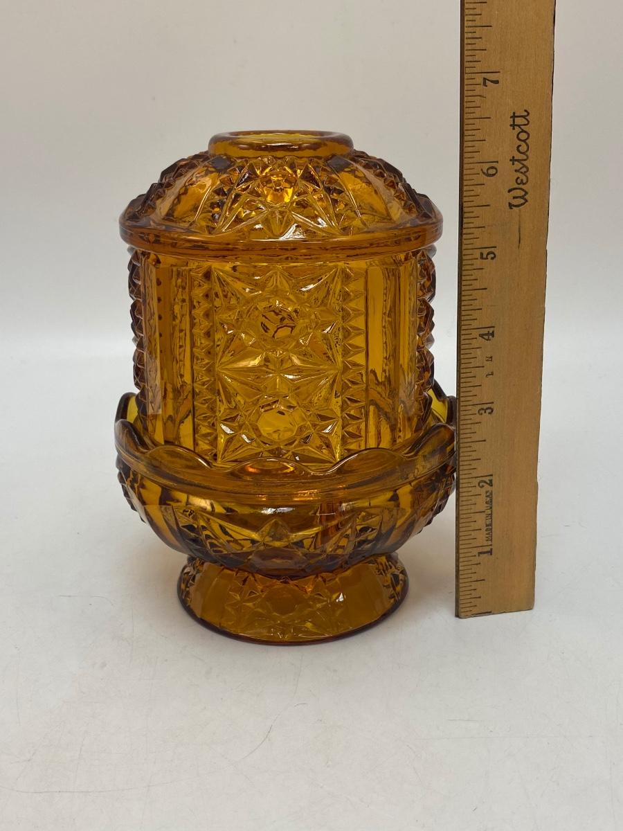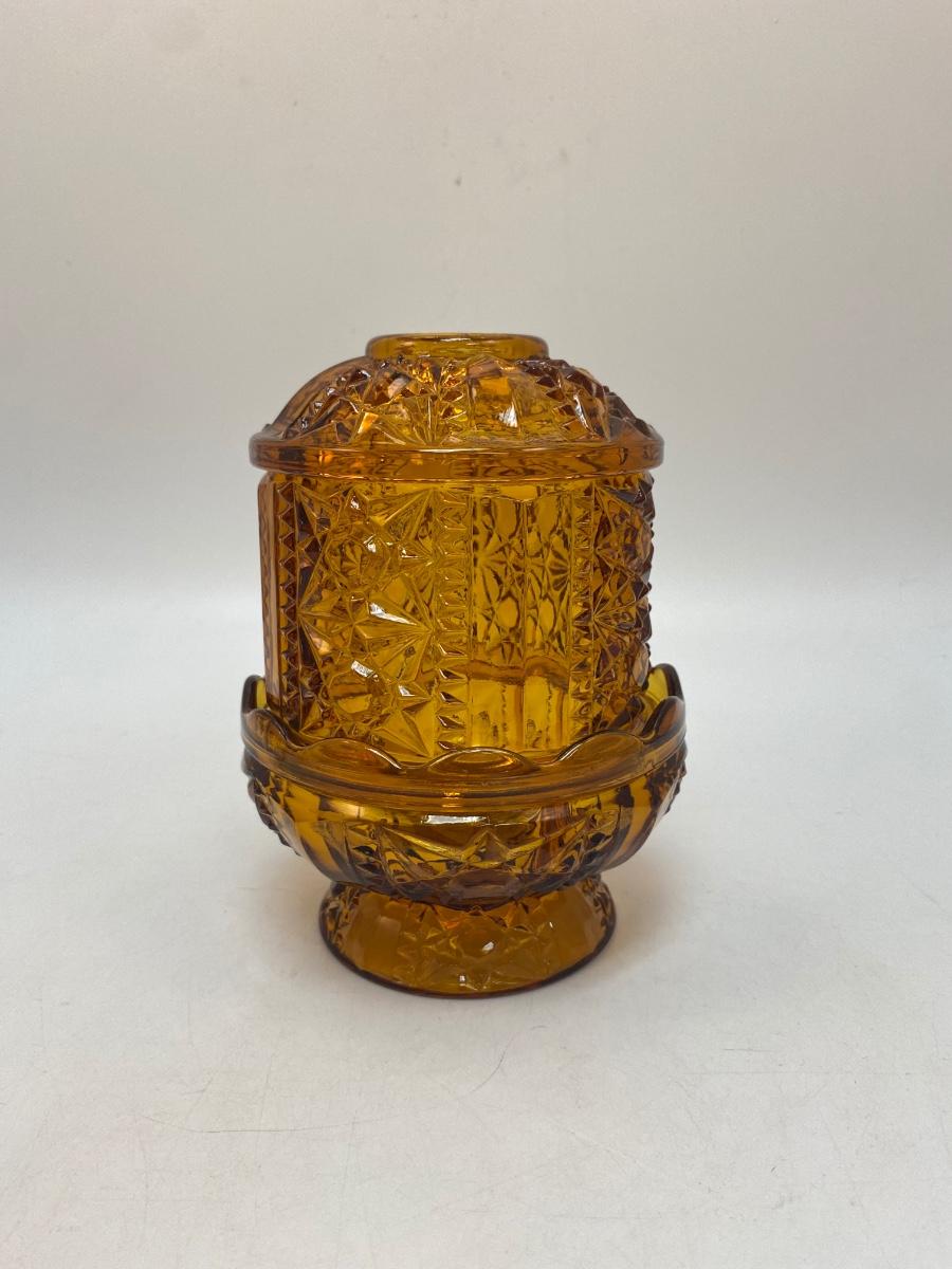 Vintage EAPG Amber Glass Fairy Lamp Light Stars and Bars Indiana Glass