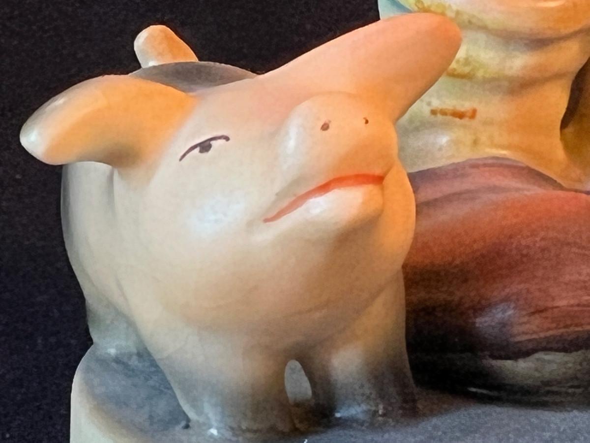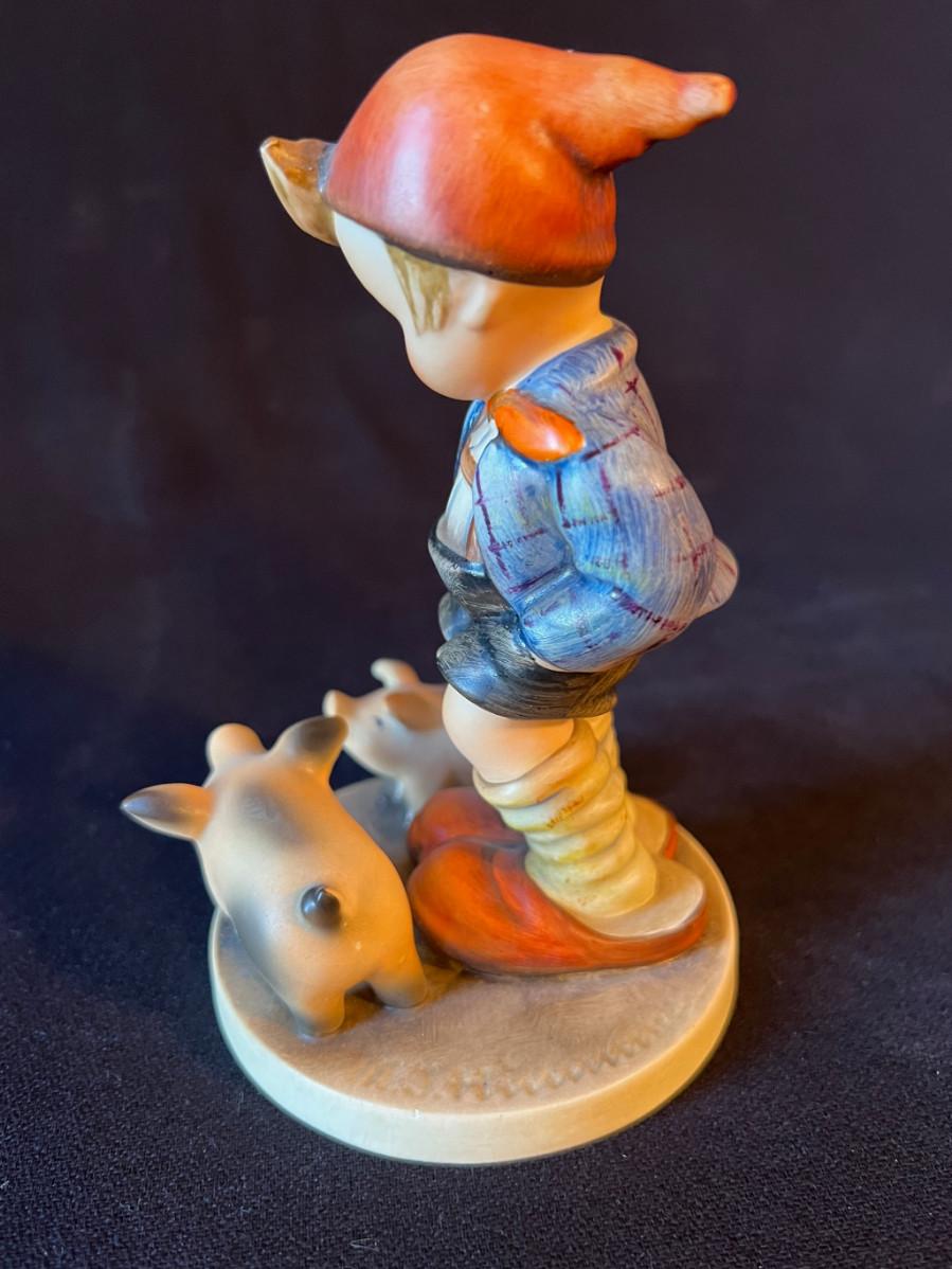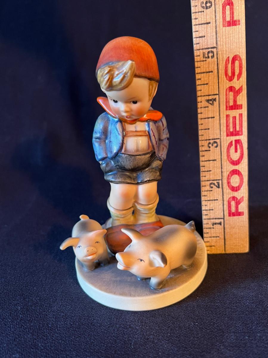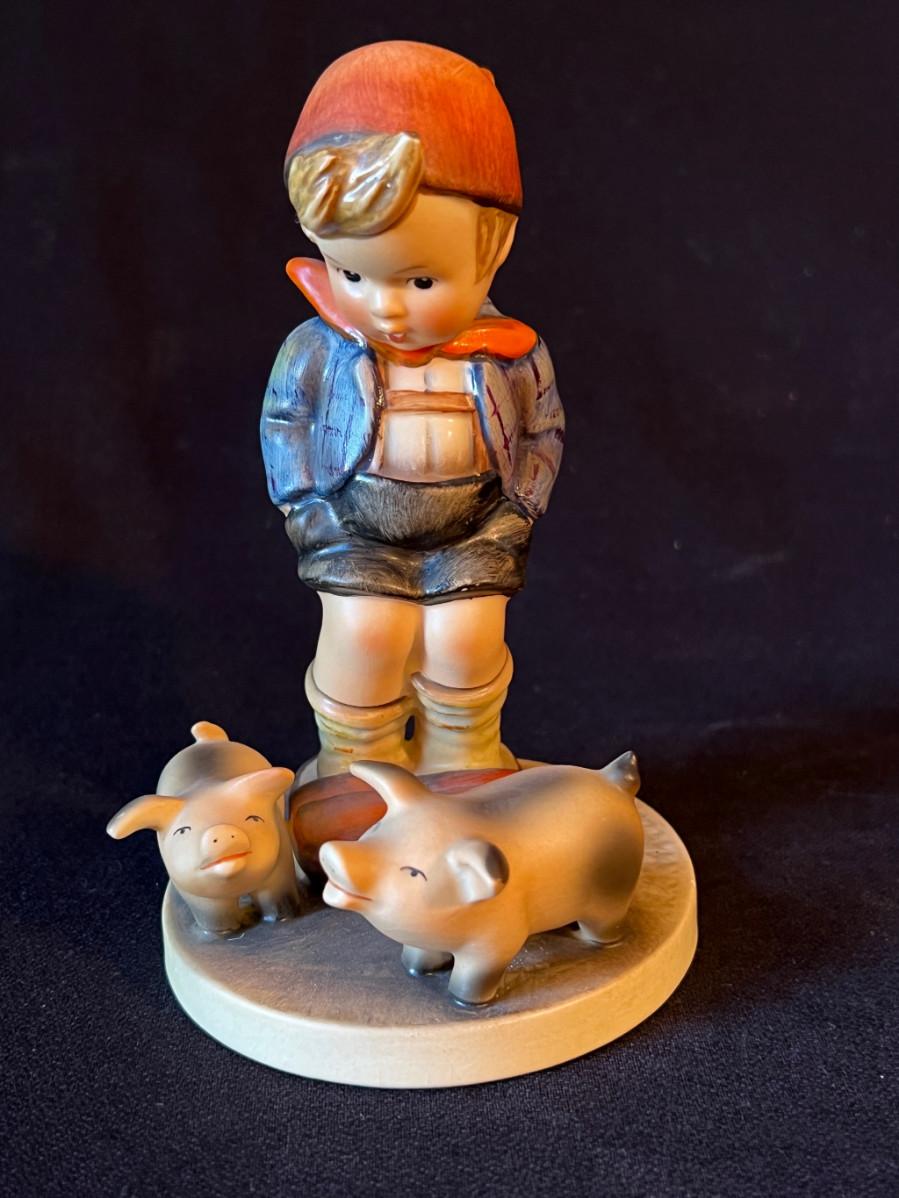 Vintage Earlier Hummel 66 Farm Boy TMK-2 Late 1950s. Delightful boy with 2 smiling pigs on a stand.