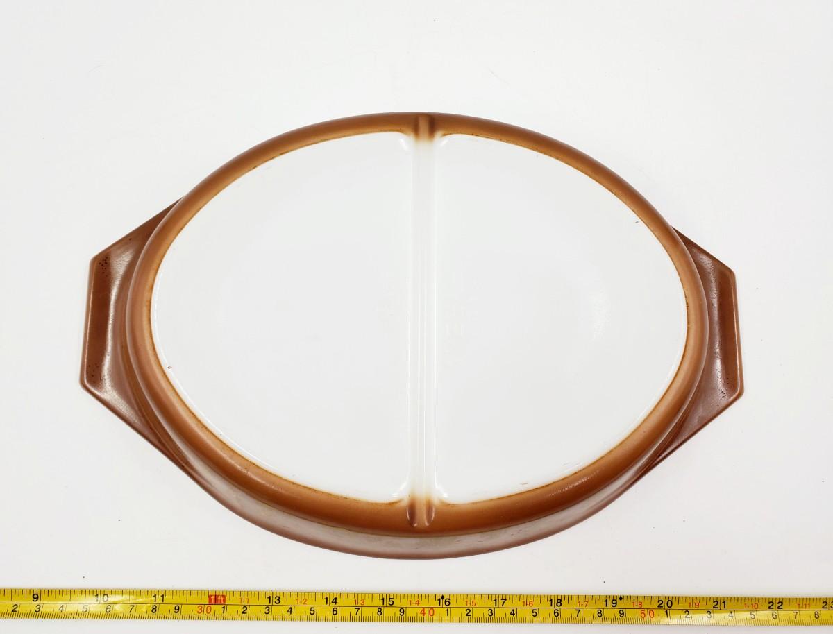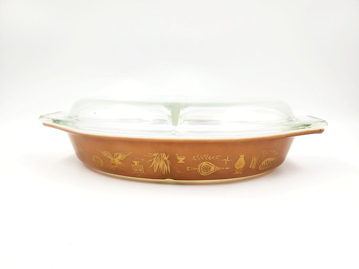 VINTAGE EARLY AMERICAN 1 1/2 QT PYREX DIVIDED DISH WITH LID