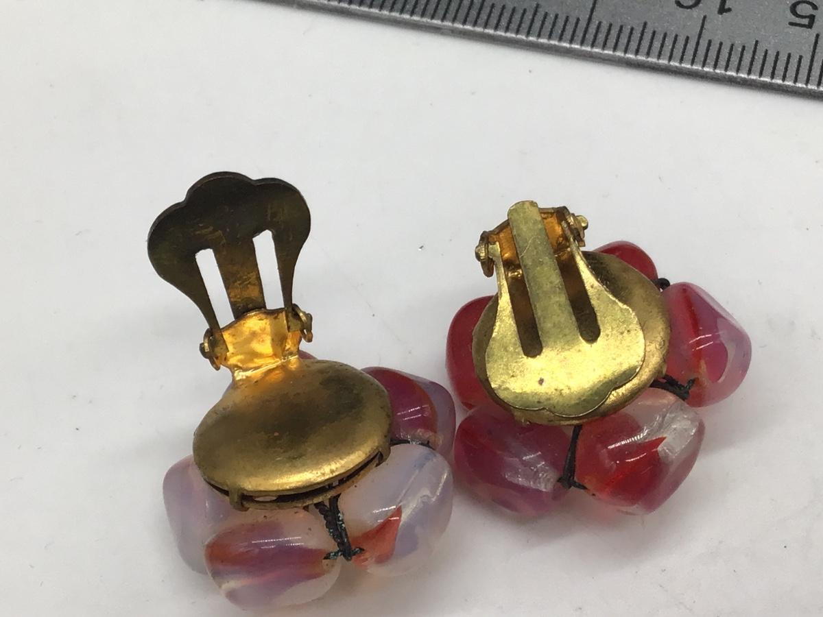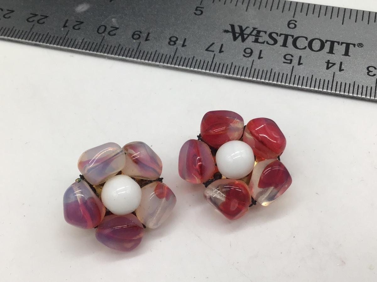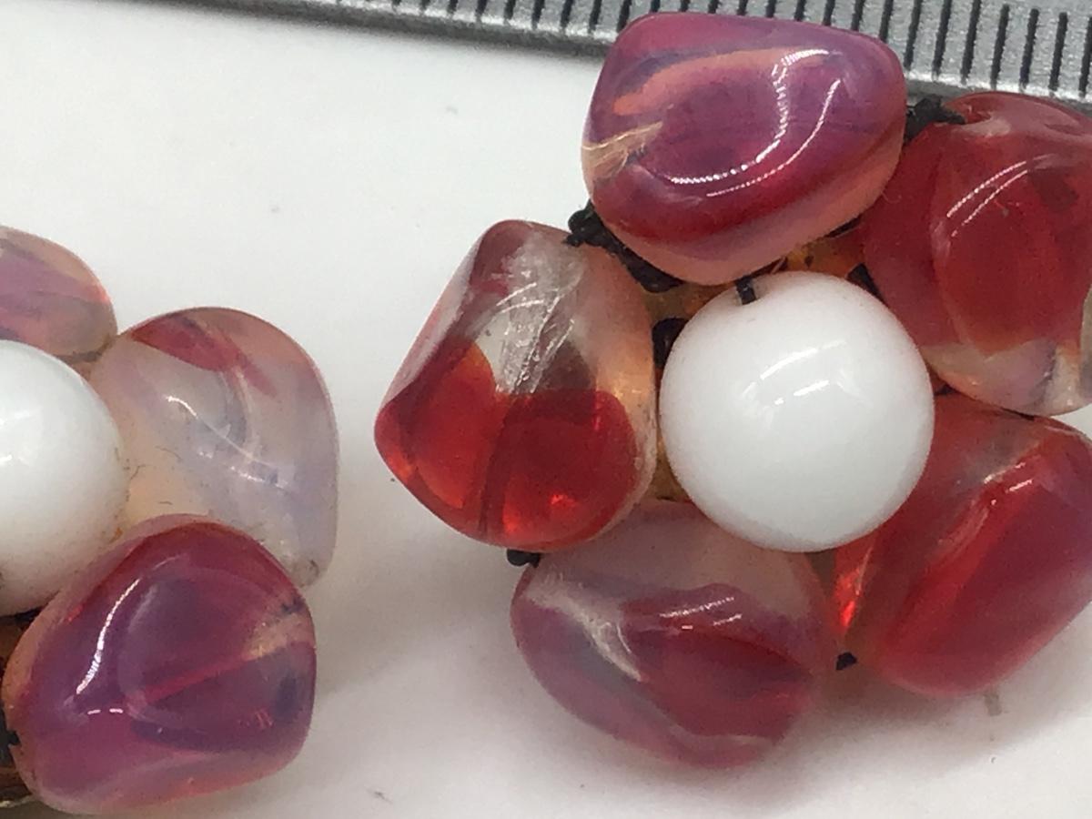 Vintage Red swirl art glass Earrings clips goldtone setting