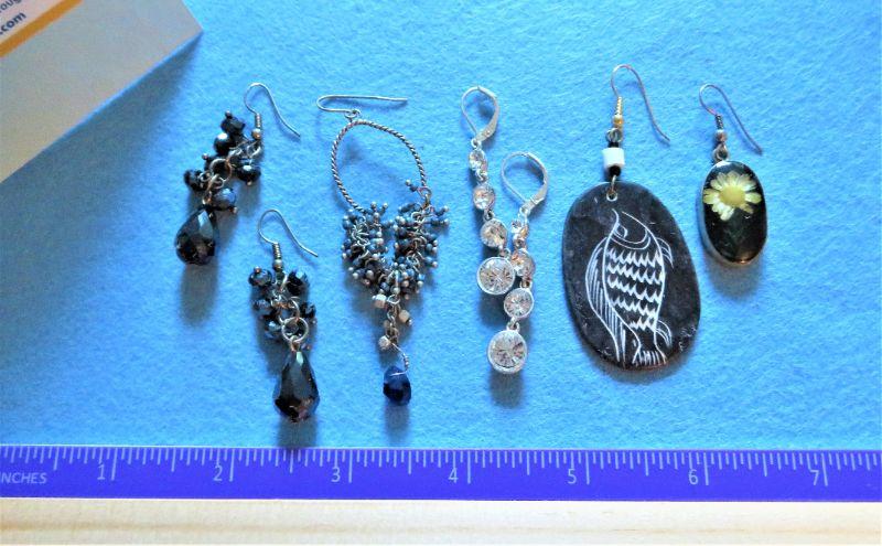 Misc VINTAGE Earrings LOT - 7 pieces with 2 matching pairs. Single One of a Kinds. In Good Condition.
