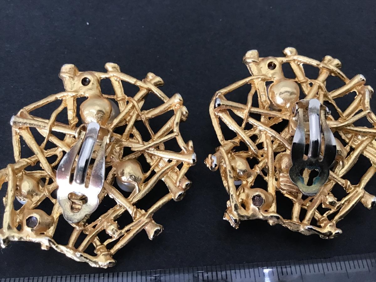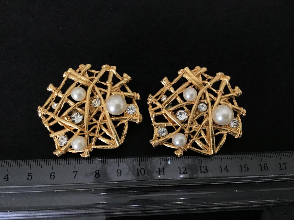 Vintage Earrings Matte Gold Rhinestone Pearl Runaway Couture Clip on Earrings