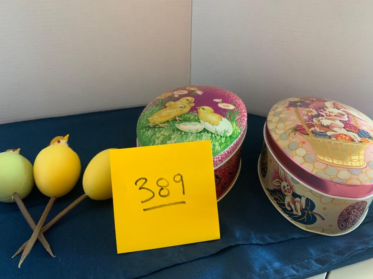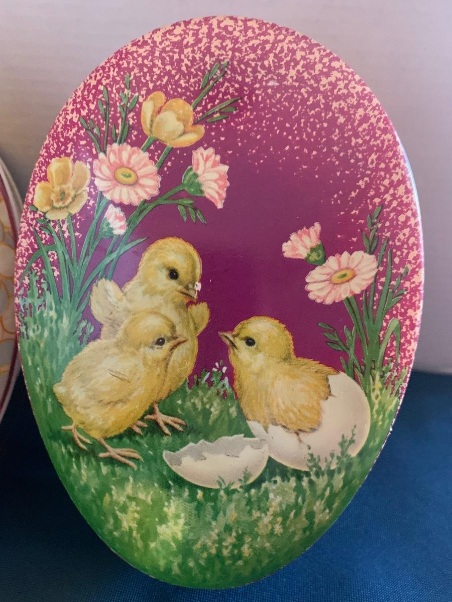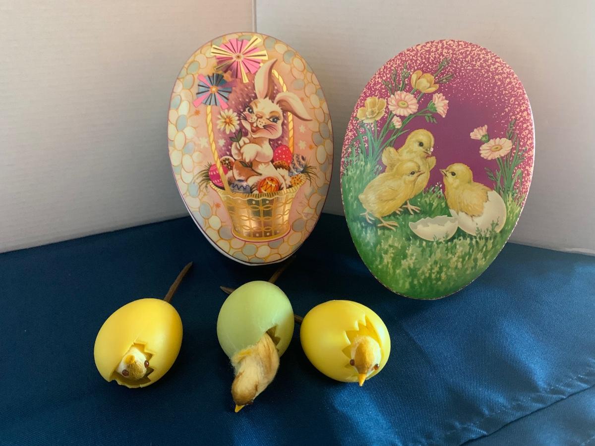 Vintage Easter Lot Baret Made in England Tins + Eggs